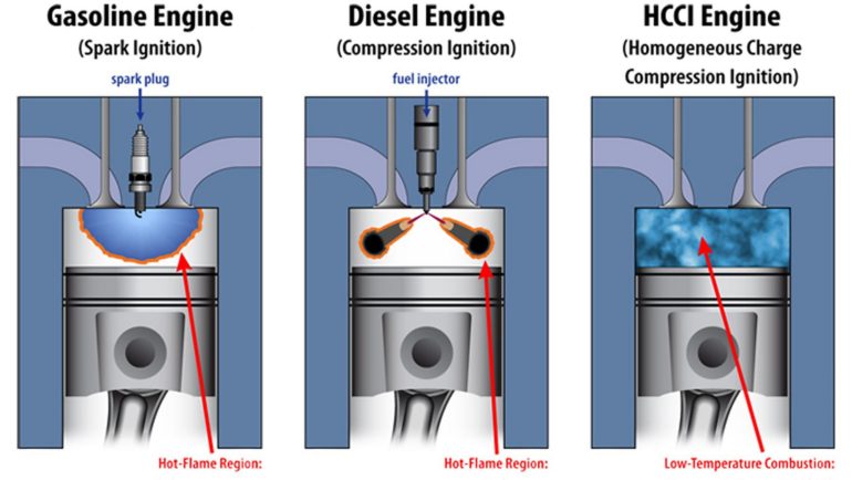 Contrariamente al motore a benzina, il Diesel è un’unità ad autoaccensione. L’aria aspirata viene riscaldata nei cilindri a una temperatura di circa 700-900°C per effetto della compressione, il che provoca, appunto, un’autoaccensione al momento dell’iniezione del carburante. Un propulsore a gasolio richiede pertanto una compressione maggiore (fino a valori di 25:1) e una struttura più robusta rispetto ai benzina. Almeno sino ad oggi, dato che entro la fine del 2018 Mazda dovrebbe presentare la seconda generazione dei motori SkyActiv, introducendo soluzioni tecniche in grado di ridurre i consumi e le emissioni a fronte di un incremento dell’efficienza energetica.Tra le novità targate Mazda vi è il cosiddetto sistema Homogeneous Charge Compression Ignition (HCCI), vale a dire l’innesco della benzina all’interno delle camere di combustione rinunciando alla scintilla provocata dalle candele. Innesco che, analogamente ai motori Diesel, verrà pertanto generato dalla compressione. Si tratterà dunque di un’autoaccensione in grado, secondo rumors insistenti, di portare a un vantaggio del 30% (!) in termini di consumi. Un risultato reso possibile dal contestuale incremento del rapporto di compressione e dall’adozione di una miscela aria/benzina molto magra (quindi con meno carburante rispetto allo standard). La prima vettura ad adottare la seconda generazione dei propulsori SkyActiv dovrebbe essere la nuova Mazda3. Il sistema verrà successivamente esteso all’intera gamma.