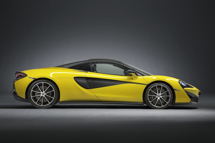 Trasmissione a doppia frizioneNon manca nessun elemento tecnico tipico delle sportive britanniche. Sono infatti confermati la monoscocca in carbonio, il V8 3.8 sovralimentato mediante due turbocompressori MHI, costruito in Gran Bretagna dallo specialista Ricardo su specifiche di Woking e dotato di albero motore piatto, la trasmissione a doppia frizione a 7 rapporti e l’impianto frenante carboceramico. Una dotazione di altissimo livello, sebbene le Sport Series rappresentino la gamma entry level per il mondo McLaren. Analogamente alle Super Series 650S Spider e 675LT Spider, la nuova scoperta inglese si avvale di un hard top in carbonio ripiegabile che, a vettura aperta, viene riposto in un vano alle spalle dei sedili. Una soluzione che, incluso il sistema di apertura elettrico, porta in dote un aggravio di peso contenuto in 46 kg rispetto alla variante coupé.