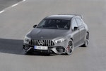Meno di 4 secondi, 3,9 per la precisione. E’ questo il tempo richiesto dalla A 45 per scattare da 0 a 100 km/h (4 secondi netti per la CLA 45). 2 decimi di secondo in più soltanto rispetto a un mostro sacro come la Porsche 911 Carrera S generazione 992. Il merito è del suo esplosivo motore 2.0 turbo a 4 cilindri da ben 421 cv, sfruttati a dovere dalla trazione integrale. Insomma: le griglie XXL, i cerchi neri, l’alettone posteriore e i passaruota allargati che ospitano carreggiate maggiorate non sono lì solo per fare scena.