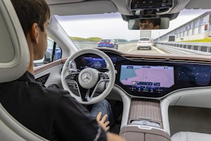 Sulla EQS, così come sulla Classe S, i sistemi di assistenza alla guida sono già predisposti per il Livello 3, non ancora consentito in Italia e in fase di certificazione in Germania. Sistemi che ho potuto provare in prima persona in un circuito chiuso di Mercedes. Livello 3: nel concreto significa che è consentito fare altro (guardare la TV, navigare in Internet o chiacchierare senza curarsi della strada) mentre, al di sotto dei 60 km/h e in autostrada, il cervellone elettronico gestisce sterzo, gas e freno.