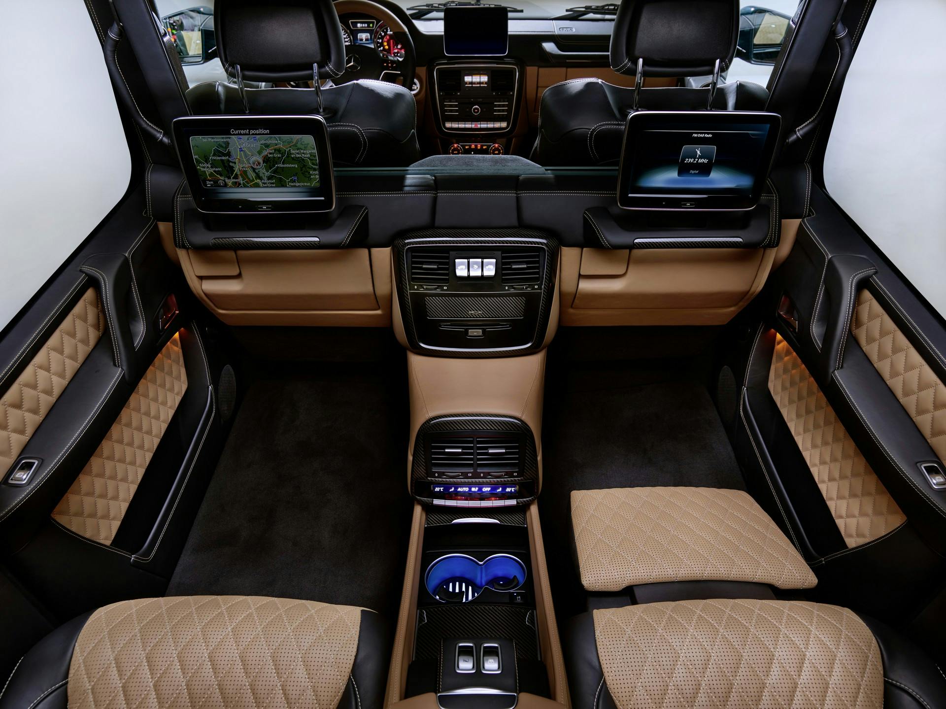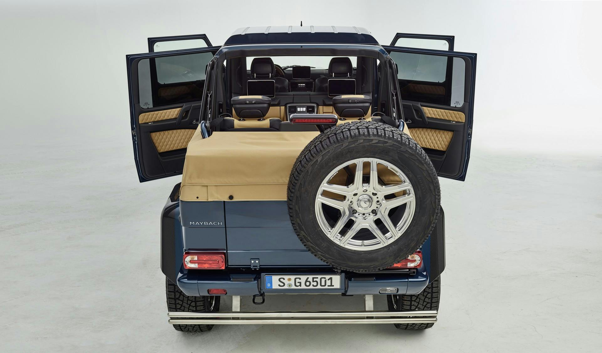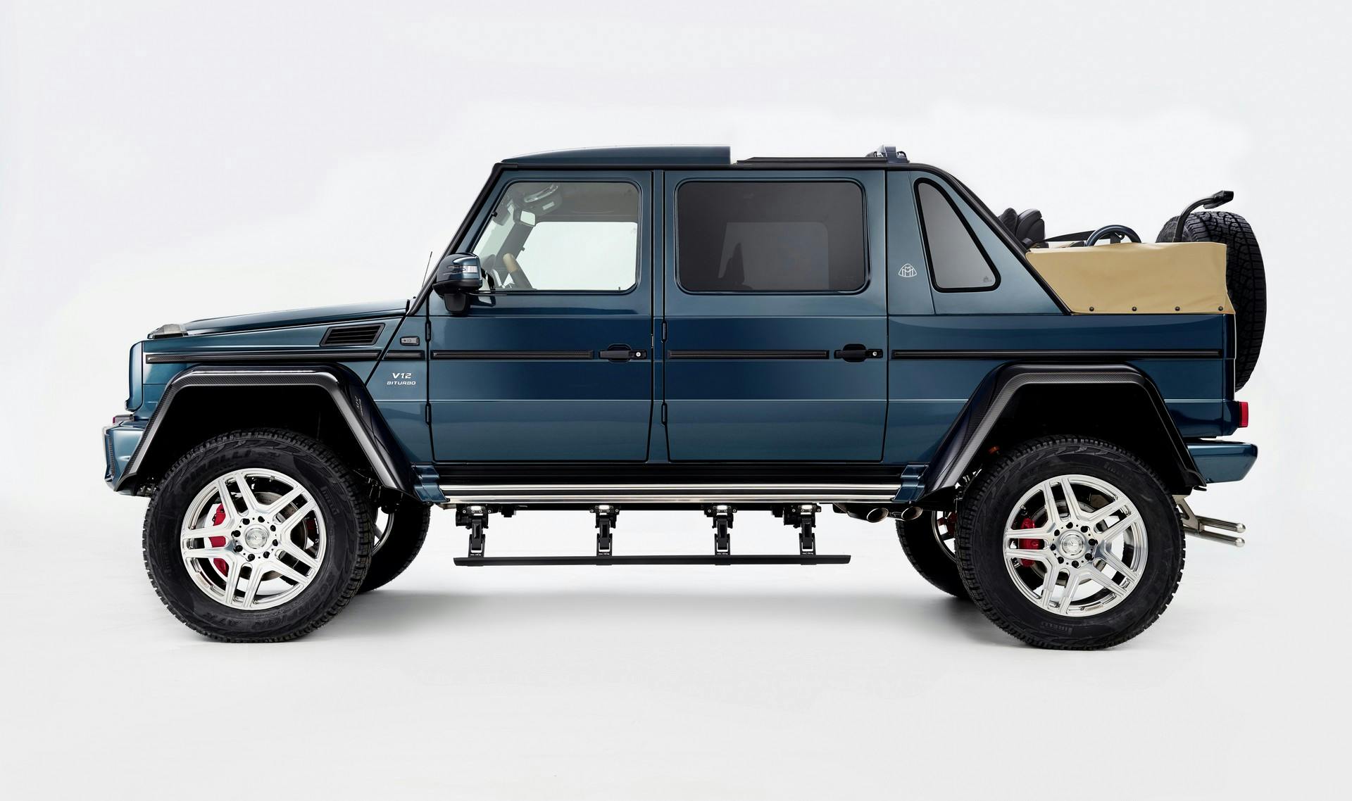 Terzo modello del brand Mercedes-Maybach dopo Classe S berlina e cabriolet, adotta il ciclopico V12 6.0 biturbo benzina appannaggio della nota G 65 AMG, in grado di erogare 630 cv e 1.000 Nm di coppia. Attesa al debutto in occasione del Salone di Ginevra (9-19 marzo), verrà prodotta in soli 99 esemplari integralmente personalizzabili nelle tinte, nei rivestimenti interni e nelle colorazioni della capote. Sotto il profilo tecnico, la vettura s’ispira alle “esagerate” G 63 AMG 6×6 e G 500 4×4² ed è pertanto caratterizzata da carreggiate ampliate di 30 cm rispetto alle G normali, da un’altezza degna di un palazzo (2,23 metri) e da una luce da terra in grado di fare invidia a un Unimog (45 cm).Le sospensioni prevedono due molle e due ammortizzatori per ruota – analogamente alle vetture che gareggiano nei rally raid – con una peculiarità: un gruppo lavora in modo convenzionale, il secondo è affidato alla gestione elettronica che permette di optare per diversi setting. Per gli incontentabili sono previste coperture con pressioni di gonfiaggio variabili dall’abitacolo e protezioni sottoscocca in acciaio inox sia all’avantreno sia al retrotreno. La carrozzeria a quattro porte con passo modificato (3,5 metri) porta in dote un’inedita capote in tela, cui è dedicata la denominazione Landaulet, mentre l’abitacolo prevede quattro sedute – anziché i cinque sedili tipici della versione G 500 4×4² – con le poltrone posteriori, derivate da Classe S, che possono essere separate dalla zona anteriore grazie a un divisorio. I passeggeri della seconda fila vengono viziati con le funzioni climatizzazione e massaggio oltre che grazie a un sistema d’infotainment dedicato, corredato di display da 10 pollici.