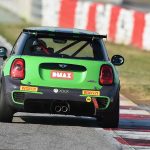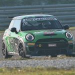 Entro guardingo perché fa veramente freddo e con le trazioni anteriori c’è da stare attenti. Gli pneumatici posteriori non si scaldano e andare in testacoda è questione di attimi. Ma trovo, insospettabilmente, un’auto che consente di spingere forte da subito, l’assetto ammorbidito non “spinge” troppo sulle gomme c’è grip e la piccola MINI è stabile anche in frenata. Inoltre, l’evoluzione delle mappature le ha regalato anche più coppia al motore, si esce bene dalle curve. Divertente, e “poco” costoso perché con una cifra che oscilla dai 30.000 ai 40.000 euro si riesce a correre una intera stagione.POI CON LA PRO