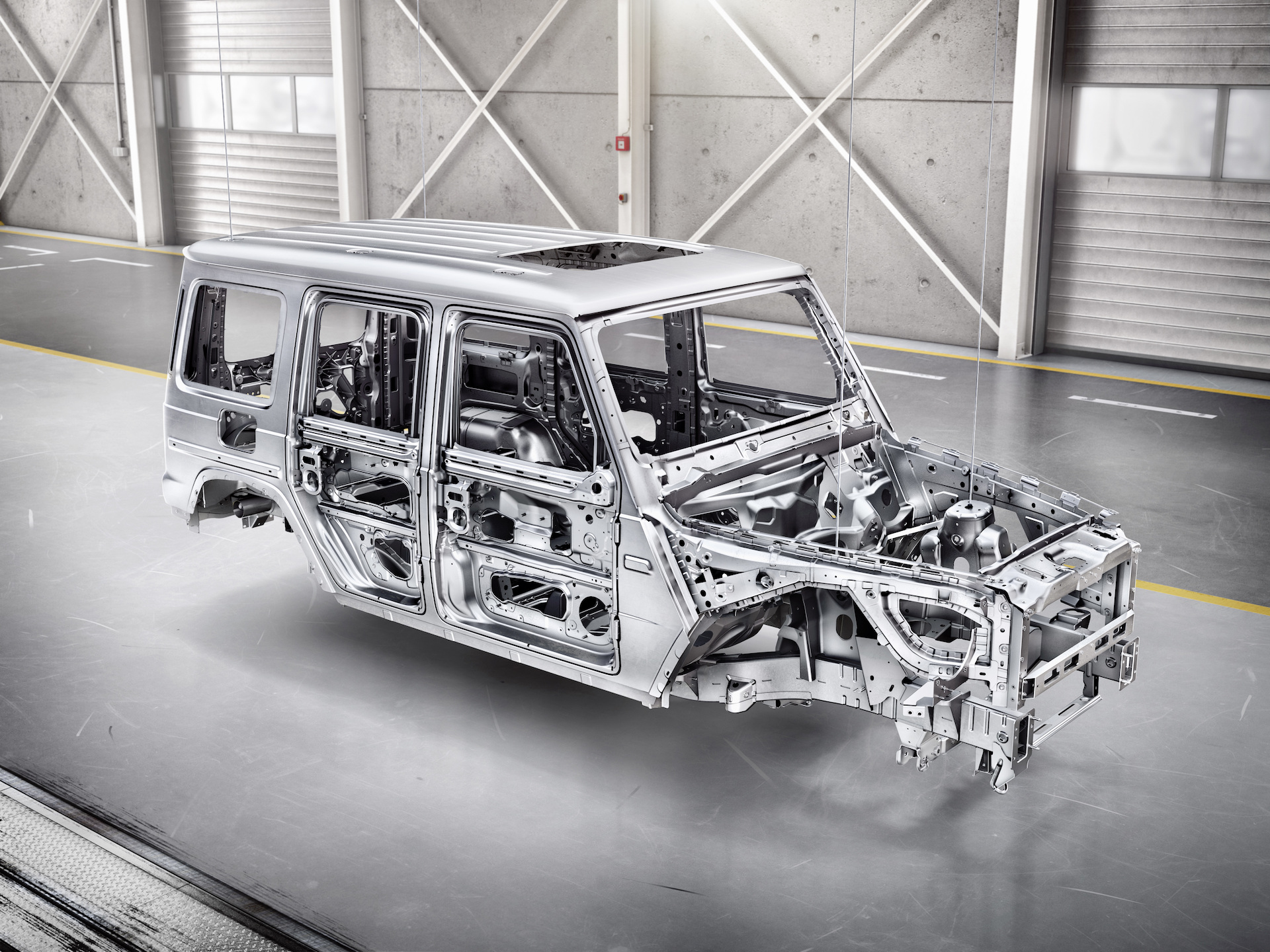 FACCIA DA DURALa faccia della Nuova Mercedes Classe G è quella di sempre, appena ingentilita dai fari a LED, che aggiungono un tocco di modernità a 40 anni di spigoli. Nonostante misure già ipertrofiche, a Stoccarda volevano più spazio interno: ecco spiegati i 5,3 cm in più di lunghezza e i ben 12,1 in più in larghezza. Tutto ciò con un risparmio di peso fino a 170 kg, grazie all’uso di materiali leggeri. Il telaio rimane a longheroni, anche se per lo sviluppo delle sospensioni (si possono avere quelle adattive) sono intervenuti i tecnici AMG, a garanzia di un comportamento “sano” sia su strada, sia fuori.