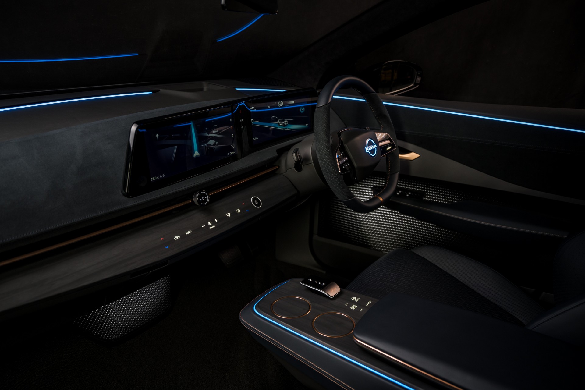 L’ispirazione alla base del nuovo concept Ariya è un mix fra la precisione e i motivi tradizionali degli artigiani giapponesi e una prospettiva giovane e moderna. I designer dicono che gli accenti ramati della linea del tetto e dei cerchi rendono omaggio al colore del sole che irrompe nel buio, inaugurando l’alba di un nuovo giorno.All’interno, l’abitacolo è lussuoso e spazioso per assicurare ai passeggeri il massimo comfort durante il viaggio. Grazie al pianale piatto – reso possibile dalla disposizione del pacco batterie e dall’assenza di un motore a combustione interna – il concept Nissan Ariya trasmette un senso di ampiezza e ariosità.