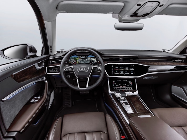 IL TRIONFO DELLA MULTIMEDIALITÀOltre ai sedili di nuovo disegno e al maggior spazio a disposizione per chi siede dietro, la nuova Audi A6 punta molto sulla tecnologia. Il sistema multimediale si chiama MMI Touch Response e ha la particolarità di restituire un feedback tattile e sonoro a ogni pressione del dito sul display. Due gli schermi, uno con diagonale da 10,1″ e l’altro, più in basso, da 8,6″, da cui si gestisce la climatizzazione. Nell’MMI si possono memorizzare fino a 7 profili di guida, con la possibilità di modificare ben 400 parametri. Scegliendo il navigatore MMI Plus si ottiene anche l’Audi Virtual Cockpit con schermo digitale da ben 12,3″. In questo caso si possono sfruttare le mappe online HERE, con funzione di auto-apprendimento in base ai tragitti effettuati e sistema Car-to-X, capace di riconoscere segnali stradali e potenziali situazioni di pericolo, comunicando con gli altri automobilisti.