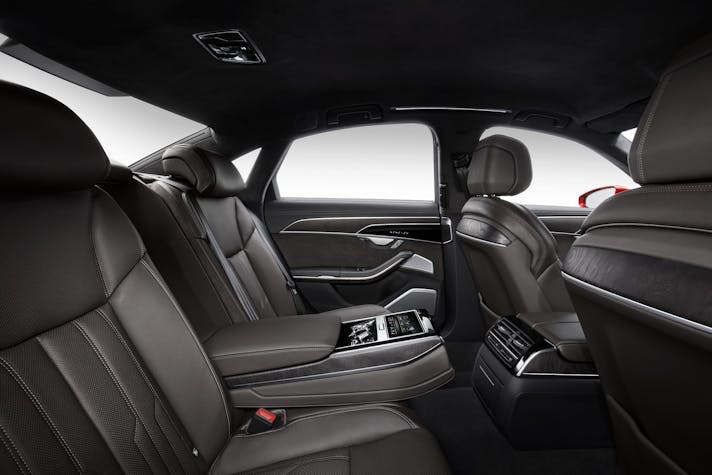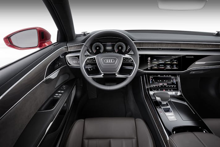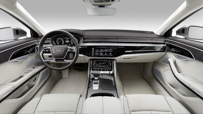 Dopo, il mondo non sarà più lo stesso: la quarta generazione della Audi A8, radicalmente rivista nello stile, nella scocca e nel layout della plancia, porta al debutto una miriade di soluzioni hi-tech e avanzati sistemi di guida autonoma che scavano un solco rispetto al passato. Se un’ammiraglia è il manifesto tecnologico di un costruttore, allora la nuova A8 può essere considerata la summa dell’innovazione made in Ingolstadt. Attesa al debutto in occasione del Salone di Francoforte, per poi raggiungere le concessionarie entro la fine del 2017, l’A8 ambisce allo scettro tra le ammiraglie. BMW Serie 7 e Mercedes-Benz Classe S sono avvisate.Anche LungaLunga 5,17 metri, cresce di 37 mm e propone linee decisamente più filanti rispetto alla precedente generazione, sul mercato dal 2009. Ai gruppi ottici anteriori a matrice di LED con tecnologia laser – Guerre Stellari, a confronto, diventa una saga di paese – alla mascherina esagonale e al tetto profilato stile coupé si accompagna un’inedita soluzione OLED a tutta larghezza al retrotreno, ispirata alle Audi del passato, in primis la mitica Quattro, e in grado di generare un fascio di luce tridimensionale. Proposta anche nella configurazione a passo lungo L (+13 cm), l’A8 si avvale dell’innovativa piattaforma Audi Space Frame in alluminio, magnesio e carbonio, più rigida del 24% rispetto al passato. Un upgrade che promette di ridurre ulteriormente vibrazioni e rumori in abitacolo.Audi A8 L interniDoppio display touchLe tradizioni sono importanti. L’innovazione, per l’A8, anche di più. Ecco perché la plancia dell’ammiraglia tedesca non è assimilabile a nessun altro modello di Ingolstadt. Al volante multifunzione a quattro razze si affianca l’inedita console corredata di un doppio touchscreen: il display superiore da 10,1 pollici dedicato all’infotainment, lo schermo inferiore da 8,6 pollici chiamato a sostituire i comandi fisici della climatizzazione, della gestione dei sedili e dell’immissione degli input per il navigatore. Una tecnologia compatibile con i movimenti swipe e il linguaggio naturale. E la “classica” interfaccia MMI Touch con il touchpad a ridosso della console? Pensionata. Non meno rivoluzionaria l’integrazione nel pacchetto Audi Connect con connettività LTE del sistema car-to-X per il dialogo della vettura con le infrastrutture e le altre auto, mentre la strumentazione integralmente digitale con pannello da 12,3 pollici – una dotazione ormai diffusa nella gamma Audi – si avvale della grafica HD con risoluzione 1920×720 pixel. Anche in questo caso, l’A8 è pioniere dell’hi-tech.Guida autonoma di Livello 3Sono ben 41 i dispositivi di assistenza alla guida disponibili. Un record. Oltre che un primato alla base del Livello 3 di guida autonoma, condizione nella quale il veicolo è in grado di procedere autonomamente, senza intervento umano, lungo tratti stradali mediamente controllati come le autostrade. La tecnologia, in questo caso, deve essere attivata espressamente dal guidatore e necessita di costante attenzione. Un orizzonte reso possibile dall’AI, l’Intelligenza Artificiale Audi, che abbinata al sistema Traffic Jam Pilot consente alla vettura di viaggiare senza interventi del conducente sino a 60 km/h nel traffico autostradale. Acceleratore, freno e sterzo sono affidati al computer attraverso l’interfaccia ZFas che ricostruisce un’immagine di ciò che circonda il veicolo, interfacciando i dati raccolti dalla telecamera frontale, dal radar, dai sensori a ultrasuoni e dallo scanner Laser. Il guidatore può staccare le mani dal volante ma solo sino a quando il veicolo richiede un intervento. In assenza di feedback l’auto si ferma nel primo spazio disponibile.Audi A8 L interniSospensioni “intelligenti”L’Intelligenza Artificiale Audi è alla base dei sistemi Garage Pilot e Parking Pilot. Il primo in grado di inserire o far uscire l’auto da un garage, il secondo di effettuare parcheggi complessi attraverso un semplice comando inviato dallo smartphone del guidatore. Smartphone che, grazie ai protocolli NFC, può essere utilizzato come chiave per l’accesso e l’avviamento dell’auto, richiamando automaticamente una miriade di regolazioni di bordo. Tanta attenzione all’hi-tech raggiunge l’apice con l’interazione tra l’AI e le sospensioni pneumatiche a controllo elettronico. Una funzione supportata dall’impianto elettrico a 48 Volt, così da gestire ogni singola ruota adattivamente e predittivamente.Meno sensazionale, ma altrettanto funzionale, l’introduzione dell’Adaptive Driving Assistant, evoluzione del classico cruise control attivo, in grado di agire da 0 a 250 km/h con il supporto della gestione autonoma nel traffico e del monitoraggio del mantenimento della corsia per un controllo totale degli spostamenti laterali e longitudinali del veicolo. La guida diventa rilassante, in ogni condizione.Sterzata integraleNon fatevi ingannare. La base tecnica della nuova A8 sembra poggiare su soluzioni consolidate ma cela una miriade di novità. A iniziare dalla sterzata integrale e dal sistema 4WD quattro che si avvale della funzione Torque Vectoring per la distribuzione variabile della coppia in funzione delle condizioni di guida non solo tra avantreno e retrotreno, ma anche tra le ruote di un singolo assale. Al differenziale posteriore sportivo, optional, si accompagna l’elettrificazione dell’intera gamma. Tutti i motori possono contare sulla tecnologia BAS, con l’alternatore che ha la funzione di motorino d’avviamento collegato all’impianto elettrico supplementare a 48 Volt (altra novità). L’ammiraglia Audi può così “veleggiare” a motore spento quando le condizioni stradali lo permettono (ad esempio prima di un semaforo) e a velocità comprese tra 55 e 160 km/h per un tempo massimo di 40 secondi. Lo Start&Stop, al contempo, è attivo già al di sotto dei 22 km/h. Una configurazione mild hybrid che promette di ridurre i consumi di 0,7