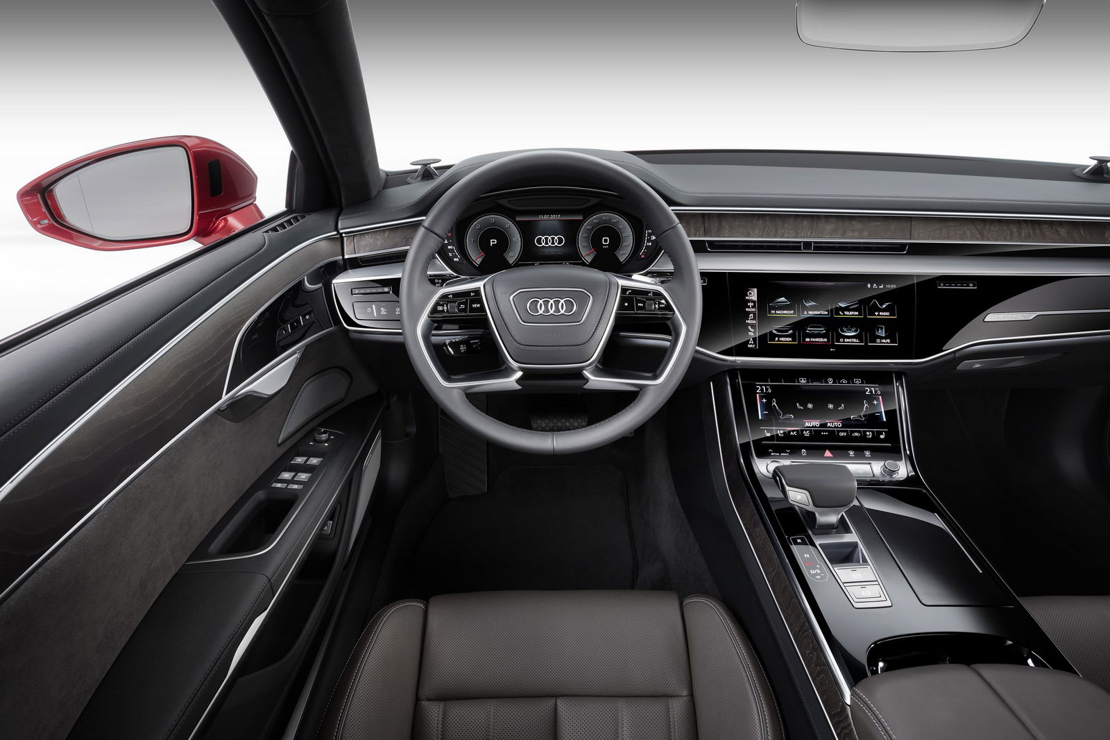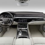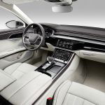 Dopo, il mondo non sarà più lo stesso: la quarta generazione della Audi A8, radicalmente rivista nello stile, nella scocca e nel layout della plancia, porta al debutto una miriade di soluzioni hi-tech e avanzati sistemi di guida autonoma che scavano un solco rispetto al passato. Se un’ammiraglia è il manifesto tecnologico di un costruttore, allora la nuova A8 può essere considerata la summa dell’innovazione made in Ingolstadt. Attesa al debutto in occasione del Salone di Francoforte, per poi raggiungere le concessionarie entro la fine del 2017, l’A8 ambisce allo scettro tra le ammiraglie. BMW Serie 7 e Mercedes-Benz Classe S sono avvisate.Anche LungaLunga 5,17 metri, cresce di 37 mm e propone linee decisamente più filanti rispetto alla precedente generazione, sul mercato dal 2009. Ai gruppi ottici anteriori a matrice di LED con tecnologia laser – Guerre Stellari, a confronto, diventa una saga di paese – alla mascherina esagonale e al tetto profilato stile coupé si accompagna un’inedita soluzione OLED a tutta larghezza al retrotreno, ispirata alle Audi del passato, in primis la mitica Quattro, e in grado di generare un fascio di luce tridimensionale. Proposta anche nella configurazione a passo lungo L (+13 cm), l’A8 si avvale dell’innovativa piattaforma Audi Space Frame in alluminio, magnesio e carbonio, più rigida del 24% rispetto al passato. Un upgrade che promette di ridurre ulteriormente vibrazioni e rumori in abitacolo.