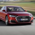 Sospensioni “intelligenti”L’Intelligenza Artificiale Audi è alla base dei sistemi Garage Pilot e Parking Pilot. Il primo in grado di inserire o far uscire l’auto da un garage, il secondo di effettuare parcheggi complessi attraverso un semplice comando inviato dallo smartphone del guidatore. Smartphone che, grazie ai protocolli NFC, può essere utilizzato come chiave per l’accesso e l’avviamento dell’auto, richiamando automaticamente una miriade di regolazioni di bordo. Tanta attenzione all’hi-tech raggiunge l’apice con l’interazione tra l’AI e le sospensioni pneumatiche a controllo elettronico. Una funzione supportata dall’impianto elettrico a 48 Volt, così da gestire ogni singola ruota adattivamente e predittivamente.Meno sensazionale, ma altrettanto funzionale, l’introduzione dell’Adaptive Driving Assistant, evoluzione del classico cruise control attivo, in grado di agire da 0 a 250 km/h con il supporto della gestione autonoma nel traffico e del monitoraggio del mantenimento della corsia per un controllo totale degli spostamenti laterali e longitudinali del veicolo. La guida diventa rilassante, in ogni condizione.Sterzata integraleNon fatevi ingannare. La base tecnica della nuova A8 sembra poggiare su soluzioni consolidate ma cela una miriade di novità. A iniziare dalla sterzata integrale e dal sistema 4WD quattro che si avvale della funzione Torque Vectoring per la distribuzione variabile della coppia in funzione delle condizioni di guida non solo tra avantreno e retrotreno, ma anche tra le ruote di un singolo assale. Al differenziale posteriore sportivo, optional, si accompagna l’elettrificazione dell’intera gamma. Tutti i motori possono contare sulla tecnologia BAS, con l’alternatore che ha la funzione di motorino d’avviamento collegato all’impianto elettrico supplementare a 48 Volt (altra novità). L’ammiraglia Audi può così “veleggiare” a motore spento quando le condizioni stradali lo permettono (ad esempio prima di un semaforo) e a velocità comprese tra 55 e 160 km/h per un tempo massimo di 40 secondi. Lo Start&Stop, al contempo, è attivo già al di sotto dei 22 km/h. Una configurazione mild hybrid che promette di ridurre i consumi di 0,7 litri ogni 100 km.Anche ibrida plug-inAl lancio la nuova A8 sarà disponibile con motori 6 cilindri turbo a iniezione diretta della benzina (3.0 TFSI da 340 cv) e del gasolio (3.0 TDI da 286 cv), cui si affiancheranno successivamente i V8 benzina 4.0 TFSI da 460 cv e Diesel 4.0 TDI da 435 cv oltre al possente W12 benzina da 6,0 litri e 590 cv. Grande attesa per il powertrain ibrido con batterie ricaricabili (plug-in) da 450 cv, basato sul V6 3.0 TFSI e accreditato di un’autonomia di 50 km in modalità esclusivamente elettrica. Unica la trasmissione disponibile, vale a dire il cambio automatico a 8 rapporti Tiptronic del tipo mediante convertitore di coppia, giunto alla seconda generazione e corredato di una pompa elettrica per l’olio che consente il funzionamento della trasmissione in combinazione con il veleggio e con lo Start&Stop evoluto.