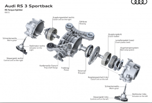 400 CV di potenza e 500 Nm di coppia dicono molto ma non dicono certo tutto della futura Audi RS 3. Dicono molto di più le due parole che seguono: Torque Splitter. Di cosa si tratta? Se avete presente il funzionamento della trazione integrale della Ford Focus RS (che invece in pensione ci è già andata, purtroppo…) siete già a buon punto.