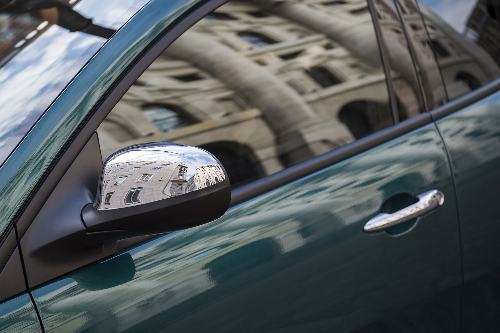 ELEFANTINO BLUIn questa versione l’estetica è Total Black per calandra, specchietti esterni e inserto griglia frontale. Le maniglie esterne si abbinano perfettamente grazie alla finitura nera opaca, così come le coppe ruota da 15”. Il montante centrale è impreziosito dal badge Elefantino Blu. Passando agli interni, questi si caratterizzano per le maglie tecniche ingrandite in tessuto Chevron dévoré, posizionate in modo casuale. Gli inserti laterali sono realizzati in tessuto tecnico star neri, abbinati alla plancia e ai pannelli porta nel nuovo materiale effetto seta, in grigio mélange.