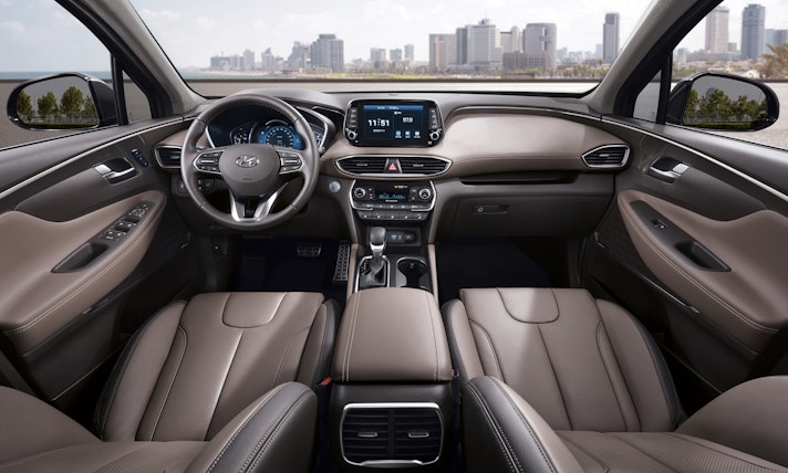 INTERNI DI CLASSELa plancia su tre livelli, con quello superiore che avvolge guidatore e passeggero (e fa da sostegno al generoso schermo del sistema infotainment) racconta di un design importante, da SUV di rango. Ma la nuova Hyundai Santa Fe può contare anche su sistemi di sicurezza all’ultimo grido: il Safety Exit Assist blocca le portiere se sopraggiunge un veicolo da dietro mentre il Rear Cross Traffic Collision Avoidance Assist frena da solo se, mentre procedete in retro, rileva altri veicoli che stanno sopraggiungendo.