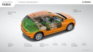 Al top del segmento, come il cliente Skoda si aspetta, gli spazi interni e il modo di sfruttarli. Quattro adulti (fino ai 185 cm di altezza) più un ragazzino viaggiano nel massimo comfort e possono contare su un bagagliaio di ben 380 litri di capacità (1.190 abbattendo gli schienali), grande cioè quanto quello di molti SUV di segmento C. La nuova Skoda Fabia è però “ben di più” dei suoi numeri. Ci sono infatti molte trovate tanto semplici quanto comode. La piccola asola nella tasca dietro gli schienali anteriori per riporre lo smartphone (Octavia docet) e il raschietto per il ghiaccio nello sportello del serbatoio con scala di misurazione del battistrada. E poi il porta-ticket sul montante anteriore e l’ombrello nella portiera del guidatore.
