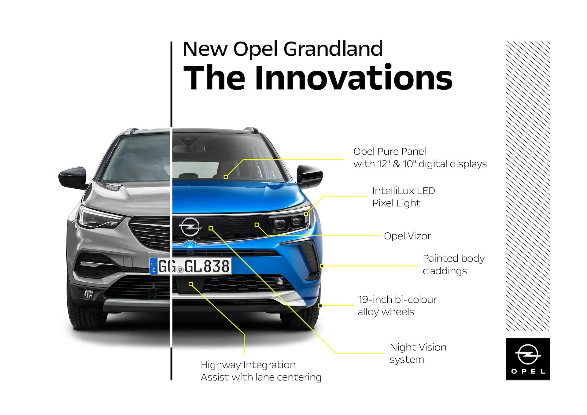 Il posteriore guadagna gruppi ottici più importanti e la scritta “Grandland” proprio sotto il logo. Alla ricerca di un design audace e minimale, la Casa tedesca ha deciso di eliminare badge e dettagli che richiamano allestimenti e motorizzazioni lasciando spazio all’estetica, senza troppi fronzoli, originale e riconoscibile.