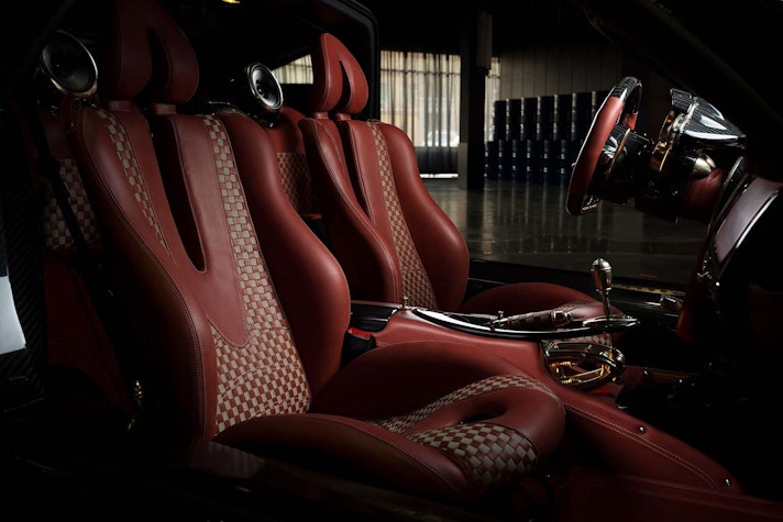 Si è partiti dalla carrozzeria: gran parte del Carbotitanio -materiale innovativo ideato da Pagani proprio per la Huayra – è rimasto in bella vista e anzi è stato lavorato per aumentarne la brillantezza anche sotto la vernice trasparente usata per il bianco e il rosso, in omaggio alla livrea della Turbina.Dai convogliatori laterali parte il Tricolore italiano, tre lampi che seguono l’andamento della fiancata fino ai gruppi ottici posteriori. Gli interni sono rivestiti di pelle a trama tridimensionale, tratta dagli artigiani di Foglizzo, mentre la mascherina frontale è stata ridisegnata per aumentare la portata d’aria. Le ruote e le pinze dei freni sono color oro, proprio come sulla Fiat Turbina. Il prezzo? Ovviamente top secret, ma indubbiamente elitario.