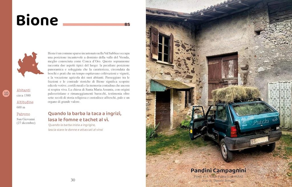Dalle miniere abbandonate alle feste patronali, dai dammusi (abitazioni e costruzioni rurali tipiche dell’isola di Pantelleria), battuti dal sole, ai passi alpini dove il tempo sembra essersi fermato. Il libro raccoglie un centinaio fotografie bizzarre, scatti che raccontano una realtà autentica. A corredo si trovano informazioni sulle paesi che ospitano questo meraviglioso mezzo, proverbi locali, piatti tipici, curiosità: il tutto confezionato con una bella dose di ironia.