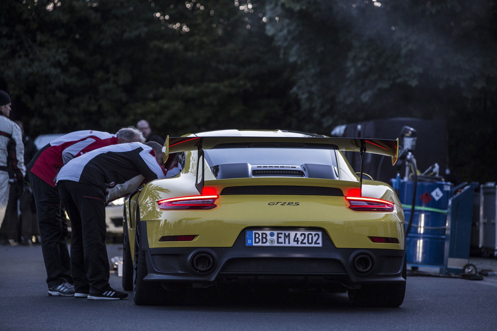 Due turbo a geometria variabileUn tempo eccezionale, inferiore persino a quanto ottenuto dalla hypercar 918 Spyder, dotata di una monoscocca in carbonio, delle 4WD e di ben tre motori, vale a dire un V8 4.6 a benzina aspirato da 608 cv e due unità a zero emissioni che portano la potenza complessiva a 887 cv e la coppia a 1.280 Nm. Del resto, una Porsche 911 così veloce e potente non si era mai vista. Protagonista assoluto è il 6 cilindri boxer 3.8 a iniezione diretta della benzina, sovralimentato mediante due turbocompressori a geometria variabile. Un’unità che sprigiona 700 cv e 750 Nm di coppia grazie all’adozione di un impianto di scarico completo in titanio e alla nebulizzazione d’acqua sugli intercooler, così da favorire il raffreddamento.Pacchetto WeissachUn giro “alla morte”, più unico che raro? Niente affatto. In occasione del record, stabilito lo scorso 20 settembre con pneumatici Michelin Pilot Sport Cup 2 omologati per l’uso stradale, entrambi i piloti impegnati, vale a dire Lars Kern e Nick Tandy, hanno percorso cinque giri restando sotto la soglia dei 6’50”. A dimostrazione di un passo eccezionale. I due esemplari di GT2 RS utilizzati potevano contare sul pacchetto Weissach – divenuto celebre proprio grazie alla 918 Spyder – foriero di un dimagrimento di 30 kg e forte delle ruote in magnesio (anteriori da 20 pollici e posteriori da 21 pollici calzanti coperture rispettivamente 265/35 e 325/30), dei componenti aerodinamici in fibra di carbonio (tetto incluso), dei mozzi in ceramica, della bulloneria in titanio e della rimozione parziale dei rivestimenti fonoassorbenti. Un kit orientato al 100% alle performance.Solo con il cambio PDKDisponibile unicamente con la trasmissione a doppia frizione PDK a 7 rapporti, la GT2 RS – il cui prezzo si attesta a 293.700 euro – si affida alla sola trazione posteriore, scattando da 0 a 100 km/h in 2,8 secondi e raggiungendo una velocità massima di 340 km/h, complice il peso contenuto in 1.470 kg grazie al citato scarico in titanio, al cofano anteriore in carbonio, al tetto in magnesio e al massiccio ricorso ai compositi. Analogamente alla Turbo S e alla GT3 RS, la nuova GT2 RS si avvale del retrotreno sterzante. Completano il pacchetto tecnico i freni carboceramici, mentre l’aerodinamica prende spunto dalla GT3 RS, come confermato dalle feritoie in corrispondenza dei passaruota anteriori.