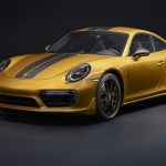 Da 0 a 100 km/h in 2,9 secondiLa Exclusive Series è un concentrato delle migliori tecnologie riservate al tema Turbo S. Lo Sport Chrono Package, ad esempio, è di serie e include il tasto Sport Response che, per venti secondi, rende motore e cambio ancor più reattivi, mentre il volante GT, derivato dalla 918 Spyder, incorpora il selettore dei programmi di guida. Il controllo della trazione e della stabilità (PSM) include la modalità Sport Mode, dedicata alla pista, laddove le sospensioni adattive PASM beneficiano di una taratura specifica. Immancabili il sistema anti rollio PDCC, i freni carboceramici e la funzione Dynamic Boost che promette di ridurre al minimo il ritardo di risposta alle pressioni del gas – il cosiddetto turbo lag – mantenendo aperta la farfalla dell’acceleratore anche nelle brevi fasi di rilascio e nonostante l’interruzione dell’iniezione della benzina. La Turbo S Exclusive Series scatta così da 0 a 100 km/h in 2,9 secondi, da 0 a 200 km/h in 9,6 secondi e tocca una velocità massima di 330 km/h.Livrea specifica e particolari in carbonioLa dotazione tecnica della vettura si completa con la trasmissione a doppia frizione PDK a 7 rapporti, la trazione integrale con giunto a lamelle a controllo elettronico e il retrotreno sterzante (sino a 2,8°). Quest’ultimo caratterizzato da attuatori elettromeccanici che agiscono sulle ruote posteriori in controfase rispetto alle anteriori sino a 50 km/h, in fase una volta oltrepassati gli 80 km/h. Quanto all’estetica, la vettura può contare su di una livrea specifica gialla ocra cui si accompagnano numerosi dettagli in carbonio. Ad esempio le stripes lungo il cofano e il tetto così come i battitacco e le calotte dei retrovisori laterali. Specifici anche i cerchi in lega monodado da 20 pollici, mentre al retrotreno spicca l’alettone derivato dal Turbo Aerokit. I rivestimenti in abitacolo, infine, riprendono le tinte bicolore della carrozzeria. Passare inosservati? Facile come scucire un dollaro a Zio Paperone!