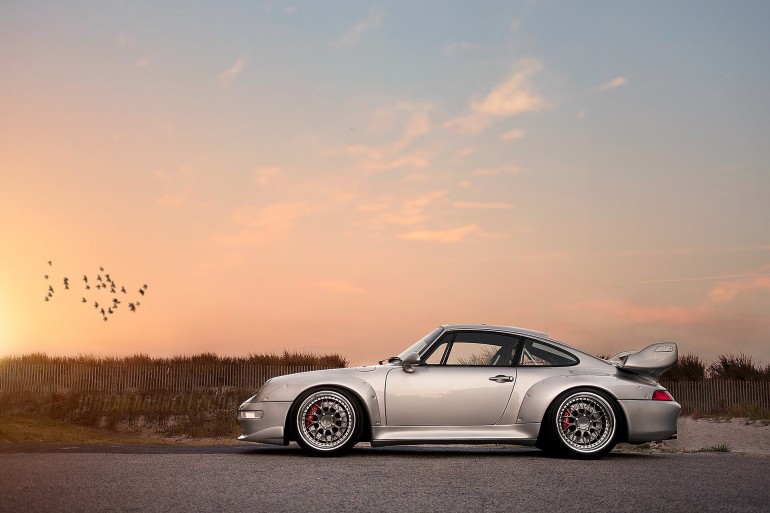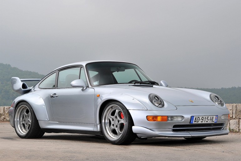 Di esemplari non incidentati ne restano pochi, anzi pochissimi. Definita dagli Inglesi “widowmaker”, letteralmente “creatrice di vedove”, derivava dalla 993 Turbo e nacque per gli impieghi sportivi, nello specifico per rispettare il regolamento del Campionato turismo GT2, al tempo ostico per le vetture 4WD. Dalla 993 Turbo si distingueva per la trazione posteriore anziché integrale, il motore anabolizzato come un pugile russo, le carreggiate allargate e i passaruota plastici rivettati, oltre al paraurti anteriore specifico e al gigantesco alettone biplano corredato di prese d’aria alle estremità. Gli interni derivavano dall’estrema Carrera RS, spogliata di ogni orpello così come di qualsiasi concessione al comfort. L’obbiettivo della massima leggerezza – pesava 1.295 kg, vale a dire oltre 200 kg meno della citata Turbo – era perseguito grazie a cofano e portiere in alluminio, superfici vetrate dallo spessore ridotto e l’eliminazione di condizionatore, alzacristalli elettrici, sedili posteriori, chiusura centralizzata e pannelli fonoassorbenti. Nuda e pura.