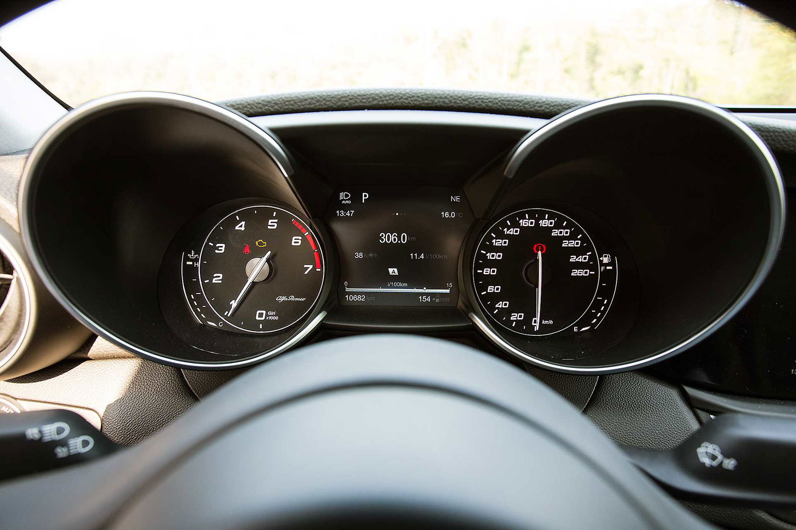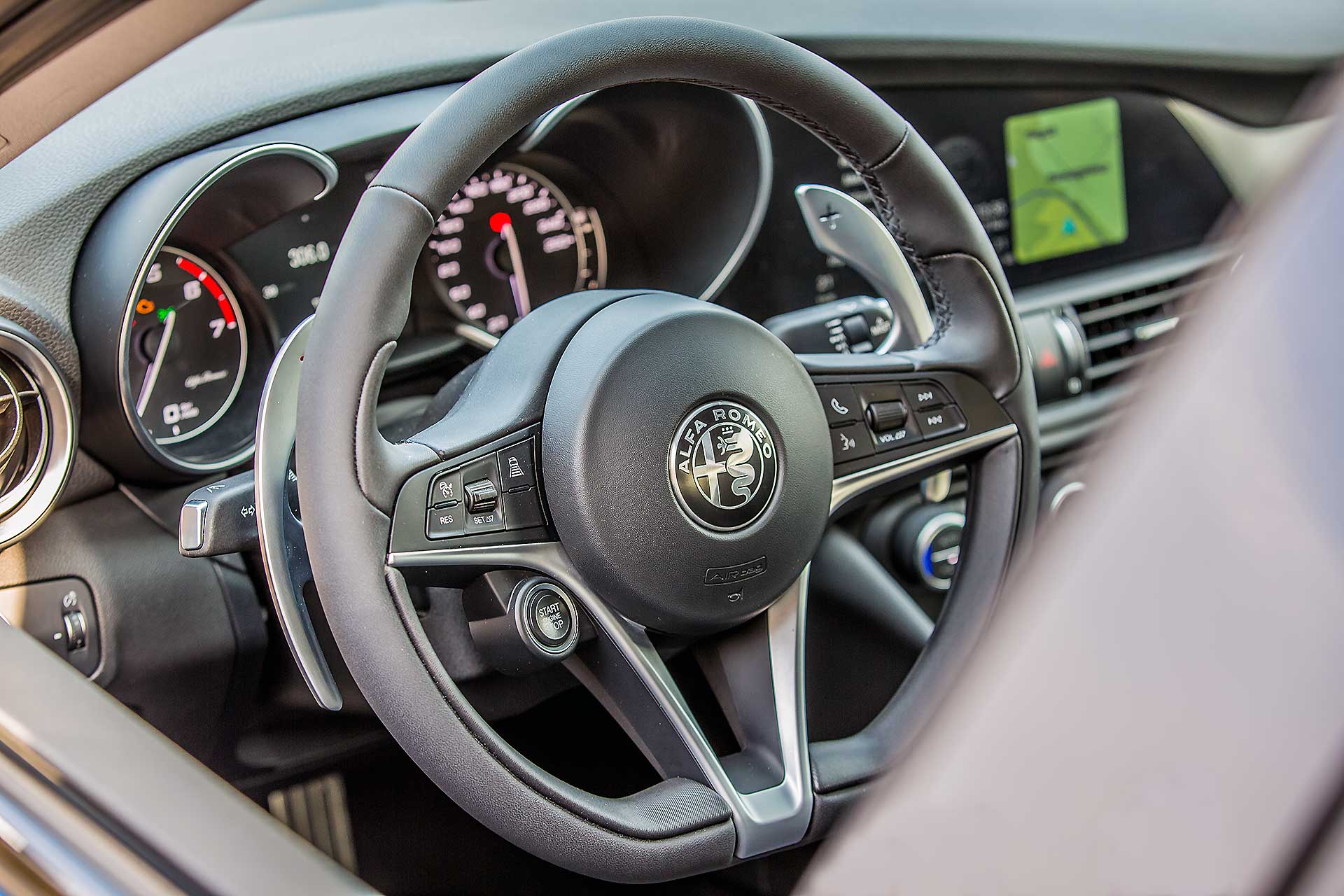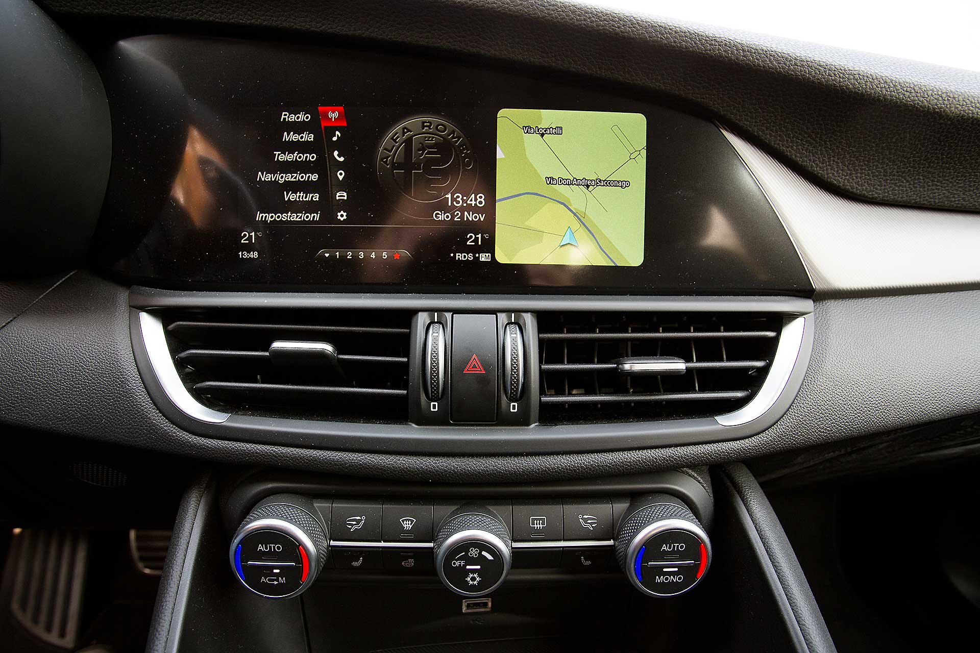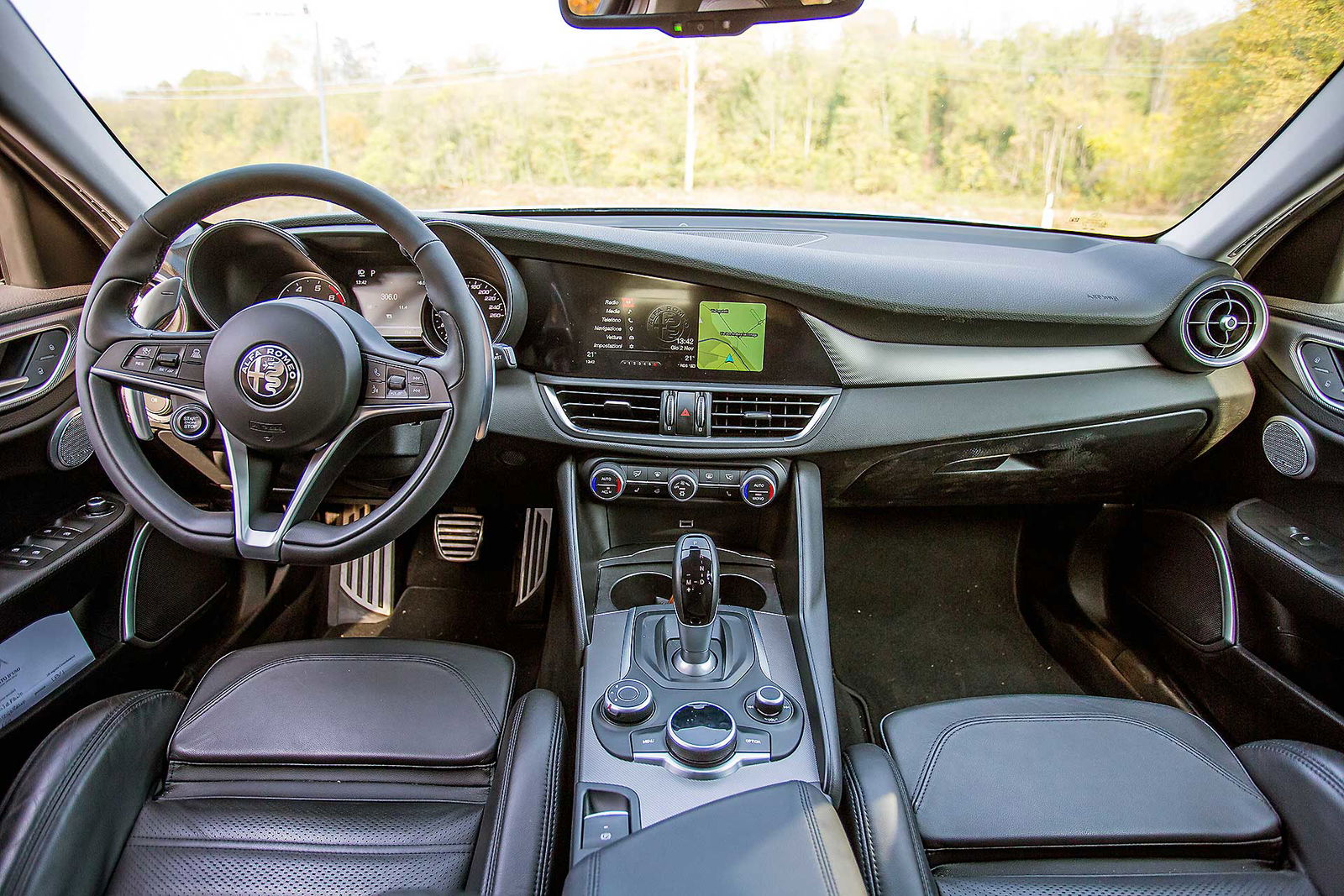 Che quest’auto mi sarebbe piaciuta un sacco da guidare l’ho capito alla prima rotonda. Proprio come accade con le moto, sono bastate tre curve per farmi spuntare il sorriso, la quarta per farmi dire “wow” e la quinta per convincermi del tutto. Sportiva? Sì. Diretta? Sì. Emozionante? Ancora sì. Non sto parlando di potenza o coppia, o prestazioni assolute che comunque sulla Giulia Veloce in prova (motore benzina da 280 cv) certo non mancano. Parlo di quel qualcosa che resta addosso quando scendi dall’auto.BERLINA CON L’ANIMAIn questo segmento non è cosa così usuale trovare auto con un “anima”. Lei ce l’ha. Quell’anima che fa sorvolare sui materiali degli interni, forse non abbastanza raffinati; su comandi che non fanno il “click” perfetto; sulle “spigolature” che fanno piacere ma non per forza lasciano il buon gusto in bocca quando scendi. Posizione di guida perfetta (per me), motore reattivo, cambio ben rapportato (lo ZF a 8 velocità in questo non delude): la Giulia trasuda sportività ma non è estrema. Posizionado il selettore DNA su “Normal” si può guidare per distanze da rappresentante senza scendere con la schiena spezzata. Pur senza negare la propria sportività, Giulia sa essere camaleontica come le moderne GT.CAMBIA CARATTERE
