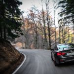 Il cambio è a doppia frizione sette rapporti con Drivelogic (M DKG): si può controllare anche attraverso le palette al volante, e si interfaccia con il Launch Control (in modalità manuale) e con il Drivelogic dotato di tre programmi di guida. La funzione Stability Clutch Control apre la frizione quando c’è il rischio di sovrasterzo.Giù il pesoGrande attenzione è stata dedicata al contenimento del peso: il terminale di scarico è in titanio (-20% sulla bilancia rispetto all’acciaio), bracci e mozzi delle ruote posteriori sono in alluminio fucinato per ridurre le masse non sospese (-3 kg), mentre davanti si risparmiano con lo stesso criterio costruttivo altri 5 kg. Il cofano motore, lo splitter anteriore (bassissimo, impossibile scendere le rampe box…), il tetto, lo spoiler e il diffusore posteriore sono in materiale composito rinforzato con fibra di carbonio (CFRP). Anche nell’abitacolo il contenimento del peso ha imposto scelte drastiche: dai pannelli porta ridotti al minimo ai sedili in fibra di carbonio (-50% di peso) con rivestimento in Alcantara, fino all’eliminazione del divanetto posteriore, che con il pacchetto Clubsport in prova (senza sovrapprezzo) è sostituito direttamente da uno scenografico rollbar; il pacchetto a richiesta include l’estintore e le cinture a sei punti, che non sostituiscono ma si aggiungono a quelle tradizionali.