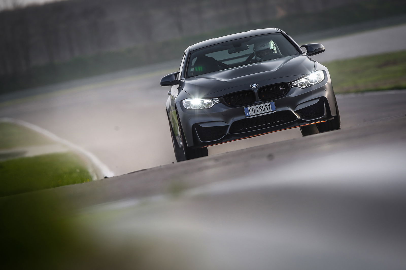 Potenza a volontàAbbandonati i viali cittadini è tempo di puntare alle montagne, passando per l’autostrada, dove è davvero difficile resistere alla tentazione di affondare il piede sull’acceleratore. Il risultato? Schiena inchiodata al sedile anche in quarta marcia, pulsazioni che salgono e volante ben stretto tra le mani! La notevole sensibilità dello sterzo emerge soprattutto quando la superficie stradale non è impeccabile. In generale guidare la BMW M4 GTS è tutto meno che rilassante: di sicuro questa non è una GT per gente benestante di mezza età. La risposta sempre pronta del motore è garanzia di divertimento anche quando c’è poco spazio per sfruttarne il notevolissimo potenziale: infatti basta qualche centinaio di metri di rettilineo, una rotonda, uno svincolo extraurbano per cogliere l’occasione e dare gas, ricevendo in cambio sensazioni uniche.Rapida e nervosaIn condizioni di sicurezza, quando è possibile finalmente alzare il ritmo, la BMW M4 GTS mette in evidenza un avantreno nervoso, che si stabilizza solo dopo l’ingresso in curva, quando gli sportivissimi pneumatici Michelin Pilot Sport Cup 2 cominciano a offrire il massimo dell’aderenza. La rapidità nei cambi di direzione è uno dei punti di forza dell’auto, insieme alla coerenza e a alla stabilità in curva, dove la sensibilità dello sterzo si trasforma da aspetto critico in risorsa, perché permette di correggere con grande precisione la traiettoria impostata. Su strada la potenza frenante è sempre sovrabbondante rispetto alle reali necessità, per un impianto che gradisce decisione sul pedale, confermando ancora una volta lo spirito senza compromessi della BMW M4 GTS. https://youtu.be/MPITlZYmDR4 CONTINUA A LEGGERE –> VAI ALLA PROVA IN PISTASei cilindri e tre litri.Testo di Marco Selvetti – Thanks to Sparco.500 cavalli imbrigliati da telaio, sospensioni e sterzo che solo la pista può far sfogare senza l’ausilio dell’elettronica. Esatto: via tutto, si può! Launch control inserito e pedale dell’acceleratore incastonato nel pavimento: lo 0-100 km/h è certificato in soli 3,8 secondi, con velocità massima autolimitata a 305 km/h. Il mix perfetto prevede un setting dello sterzo più duro da azionare ma funzionale alla guida sportiva, un’eccellente velocità di cambiata garantita dal doppia frizione M a sette rapporti con Drivelogic M DKG e cinture a cinque punti ben allacciate.Se la guida su strada è il trionfo dell’edonismo – solo lo spoiler in carbonio merita il bacio accademico – a calamitare l’attenzione non sono i colori ma il suono. Benedetti gli ingegneri che hanno studiato frequenze, risonanze, materiali preziosi come il titanio per gli scarichi e percorsi dei gas combusti per rendere la guida un’esperienza da vivere con il deflettore laterale abbassato di almeno un paio di centimetri.