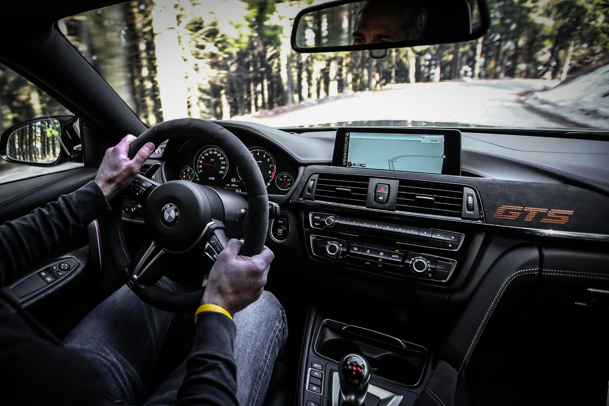 Su stradaSe pensate che girare per Milano con una supercar non sia imbarazzante dovreste vedere gli sguardi dei passanti al cospetto della BMW M4 GTS: sconcerto, ammirazione, occhi sbarrati e smartphone in mano per immortalare il momento, accompagnato da una colonna sonora perentoria come l’assetto dell’auto. Sì, perché va detto che, a prescindere dalla modalità di guida prescelta, il comfort a bordo rasenta quello di un’auto da corsa: complice il fondo stradale rovinato, spostarsi a bordo della M4 GTS richiede una buona forma fisica. Sul sedile – essenziale nell’aspetto come nella sostanza, vista l’imbottitura molto ridotta – letteralmente si salta (il sobbalzo sarebbe già un sollievo…), mentre l’abitacolo è invaso dal piacevole rumore del motore e da quello della strada, sotto forma di detriti che vengono sollevati dal diffusore posteriore. L’effetto è indiscutibilmente racing, per nulla mitigato da strumentazione e comandi, che a sorpresa sono quelli di una normalissima Serie 4. Il rischio di immaginarsi a bordo di una normale berlina però è del tutto scongiurato…