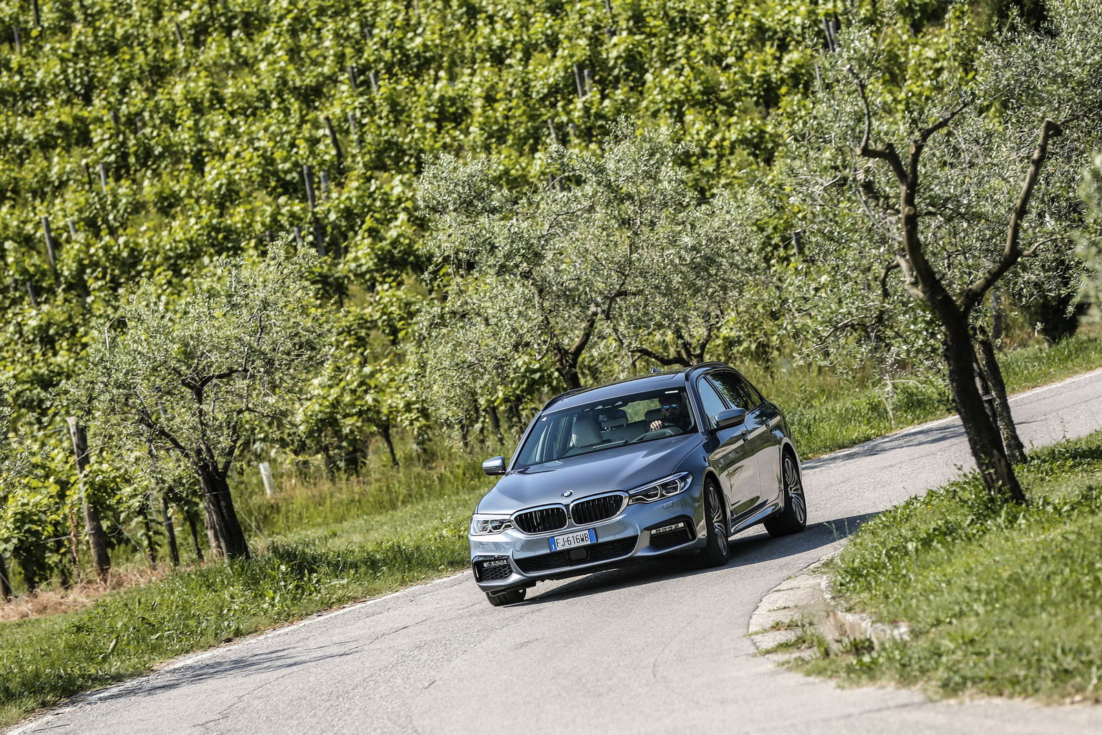 Comandi vocali e gestualiIl reparto multimediale compie un vero e proprio balzo generazione in quanto corredato dei comandi sia vocali – ora compatibili con il linguaggio naturale – sia gestuali (una novità), laddove i servizi BMW Connected divengono collegabili mediante cloud e quindi sincronizzabili con gli smartphone. Avveniristico l’interscambio d’informazioni car-to-car. La vera rivoluzione, analogamente a Serie 5 berlina, riguarda però i sistemi di assistenza al conducente che consentono di “assaggiare” la guida autonoma. Fra questi spiccano il Lane Change Assistant, la tecnologia di supporto attivo al mantenimento della corsia, il cruise control adattivo con rispetto dei limiti di velocità e funzione Stop & Go, la frenata automatica d’emergenza, l’avviso di rischio di collisione laterale o d’imbocco di una strada contromano, l’assistente personale alla mobilità e la ricerca intelligente del parcheggio, oltretutto controllabile da remoto. Tecnologie che si aggiungono ai fari adattivi a LED e alla visione notturna per l’individuazione di persone e animali. La nuova Serie 5 Touring è hi-tech.DRIVELa praticità di una wagon e il comportamento di una berlina sportiveggiante. Questa, in estrema sintesi, è l’anima della nuova Serie 5 Touring. Specie nella versione 530d xDrive, la famigliare bavarese stupisce dinamicamente a dispetto della mole di 1.800 kg, superiore di 105 kg alla “gemella” a quattro porte. Per un confronto, la Mercedes-Benz Classe E SW 350d, dotata anch’essa di un 6 cilindri 3.0 turbodiesel, ferma l’ago della bilancia a 1.815 kg pur rinunciando alla trazione integrale. Un gap che trova conferma nel carattere delle vetture. Votata al comfort la wagon della Stella, sebbene decisamente più precisa che in passato, performante, intuitiva e comunicativa la station dell’Elica. Proprio il feeling è il punto di forza della vettura bavarese, pronta a lasciarsi dare de tu sin dai primi chilometri ed estremamente sincera nelle reazioni anche qualora si sfruttino a fondo i 265 cv e 620 Nm erogati dal propulsore.