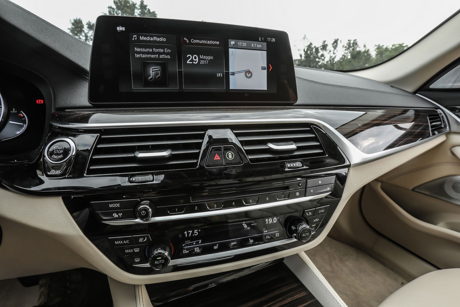 Divanetto frazionabile 40/20/40Non è mai stata la wagon più capiente del segmento. Il vecchio modello, forte di un bagagliaio da 560 a 1.670 litri, nulla poteva qualora confrontato con la storica rivale Mercedes-Benz Classe E SW, accreditata di 670/1.820 litri. Una caratteristica solo in parte attenuata dalla nuova Serie 5 Touring, dato che la capacità di carico cresce a 570 litri con cinque persone a bordo e a 1.700 litri una volta abbattuto il divanetto frazionabile elettricamente 40/20/40. Ben più rilevante la reintroduzione del lunotto apribile separatamente: un plus già appannaggio della terza generazione della vettura e che promette di giocare a vantaggio dello sfruttamento dello spazio interno. Nel segno della praticità anche l’apertura senza mani del portellone in alluminio così come la possibilità di alloggiare la cappelliera retrattile, una volta rimossa, in un apposito sottofondo.Debutta il display con tecnologia touchLa posizione di guida è per BMW come una medaglia al valore militare per un soldato: qualcosa di cui andare fieri, sempre. All’adattamento elettrico dello sterzo e alle generose possibilità di regolazione del sedile in longitudine, altezza, nell’inclinazione dello schienale e nel supporto lombare (in quattro direzioni) si aggiunge la possibilità di personalizzare tanto la curvatura quanto il contenimento del citato schienale, oltre a poter estendere, questa volta manualmente, la superficie del cuscino. Chiunque entra immediatamente in sintonia con la Serie 5 Touring. Il feeling così instaurato trova conferma nei comandi di bordo, forti della possibilità di gestire le opzioni dell’auto non solamente mediante il classico controller multifunzione iDrive collocato lungo il tunnel, ma anche mediante l’inedito display touch da 10,2 pollici del sistema d’infotainment.