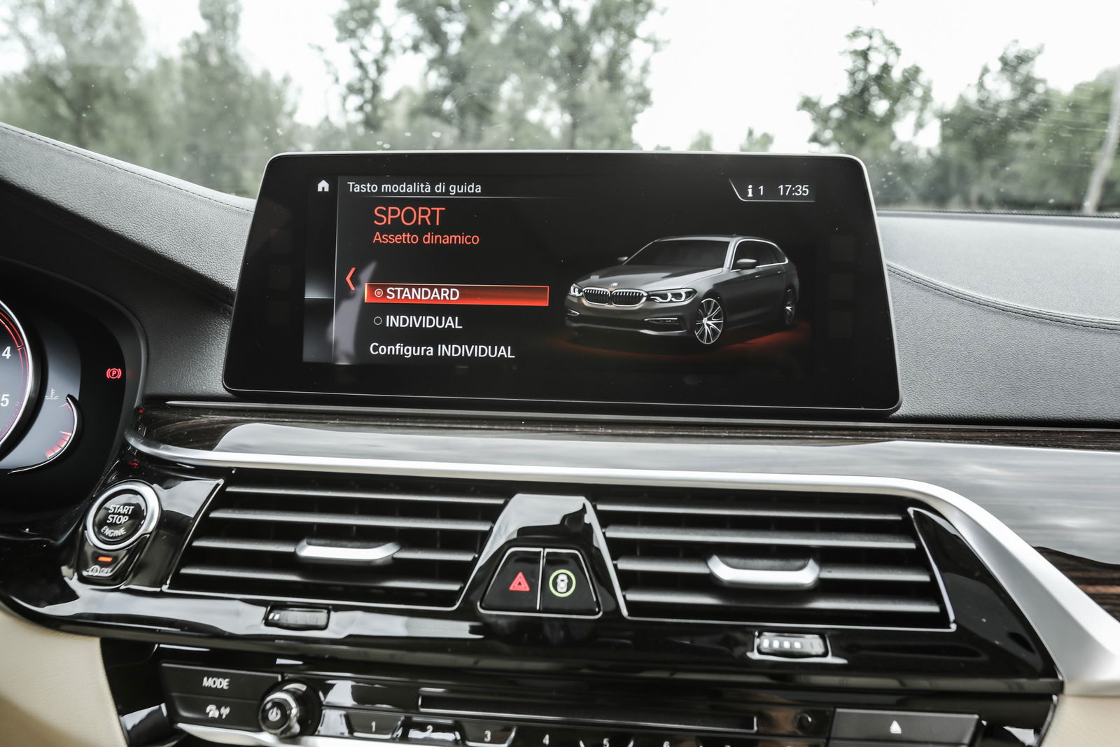 Un pulsante per scegliere il programma di marciaAll’insegna della personalizzazione il pulsante Driving Experience Control che consente di optare per i programmi di marcia Comfort, Sport, Eco Pro e Adaptive. Questi armonizzano – la modalità Adaptive automaticamente in funzione dello stile di guida – la prontezza di risposta del motore alle pressioni dell’acceleratore, la logica di gestione del cambio, la servoassistenza dello sterzo, il livello d’intervento del controllo di stabilità e trazione nonché la taratura delle sospensioni. Tanta raffinatezza si accompagna alla possibilità, per la prima volta nella storia della Serie 5 Touring, di abbinare le 4WD alla sterzatura integrale e all’assetto sportivo M Sport – quest’ultimo non in dotazione alla vettura in prova – che comporta una riduzione di 10 mm della luce da terra.