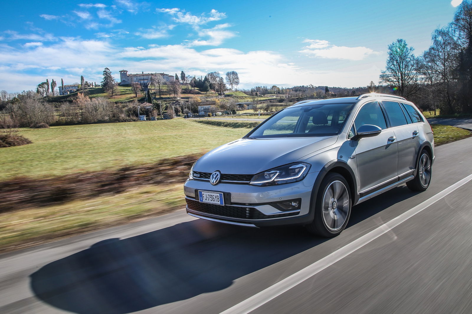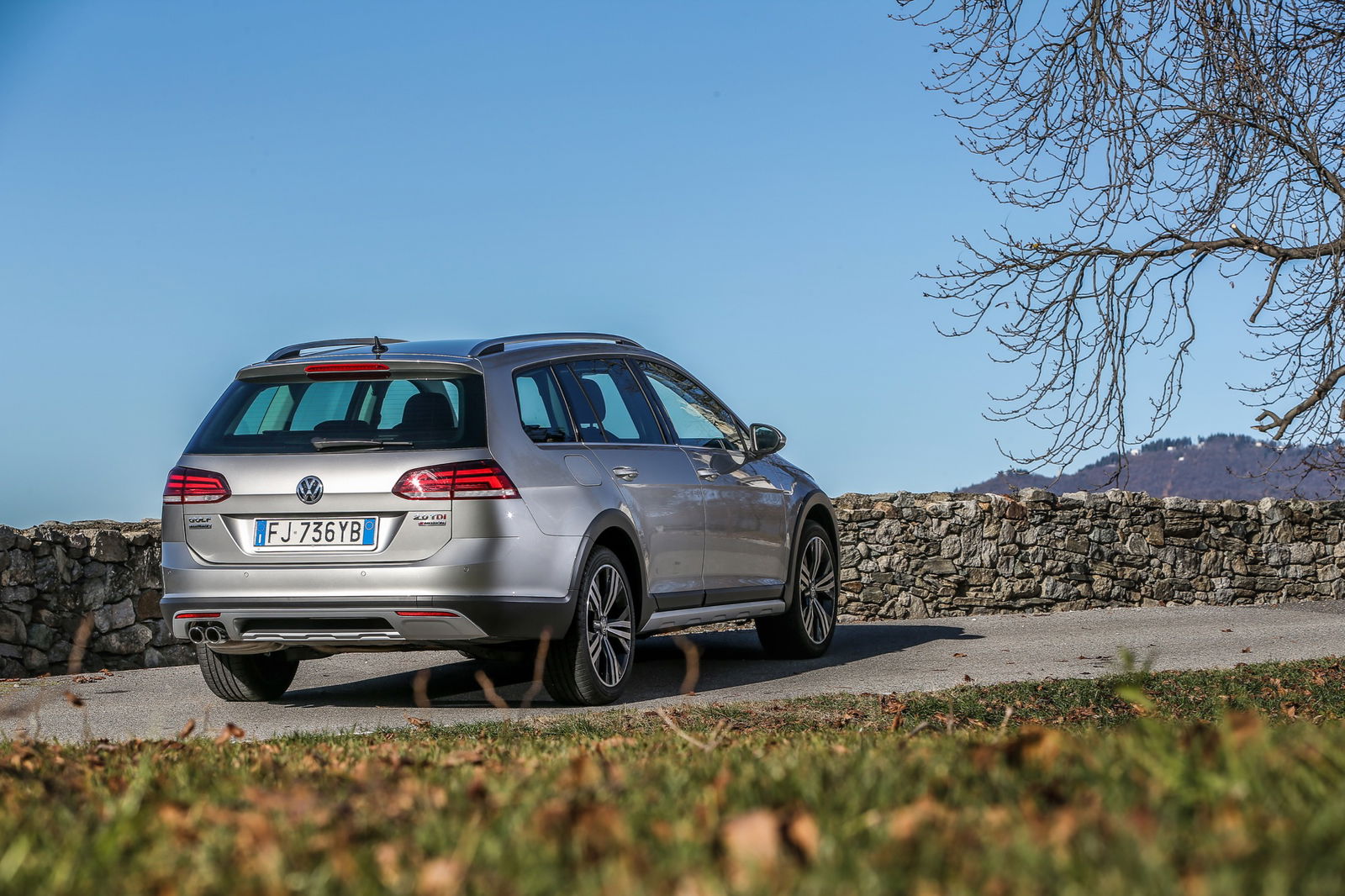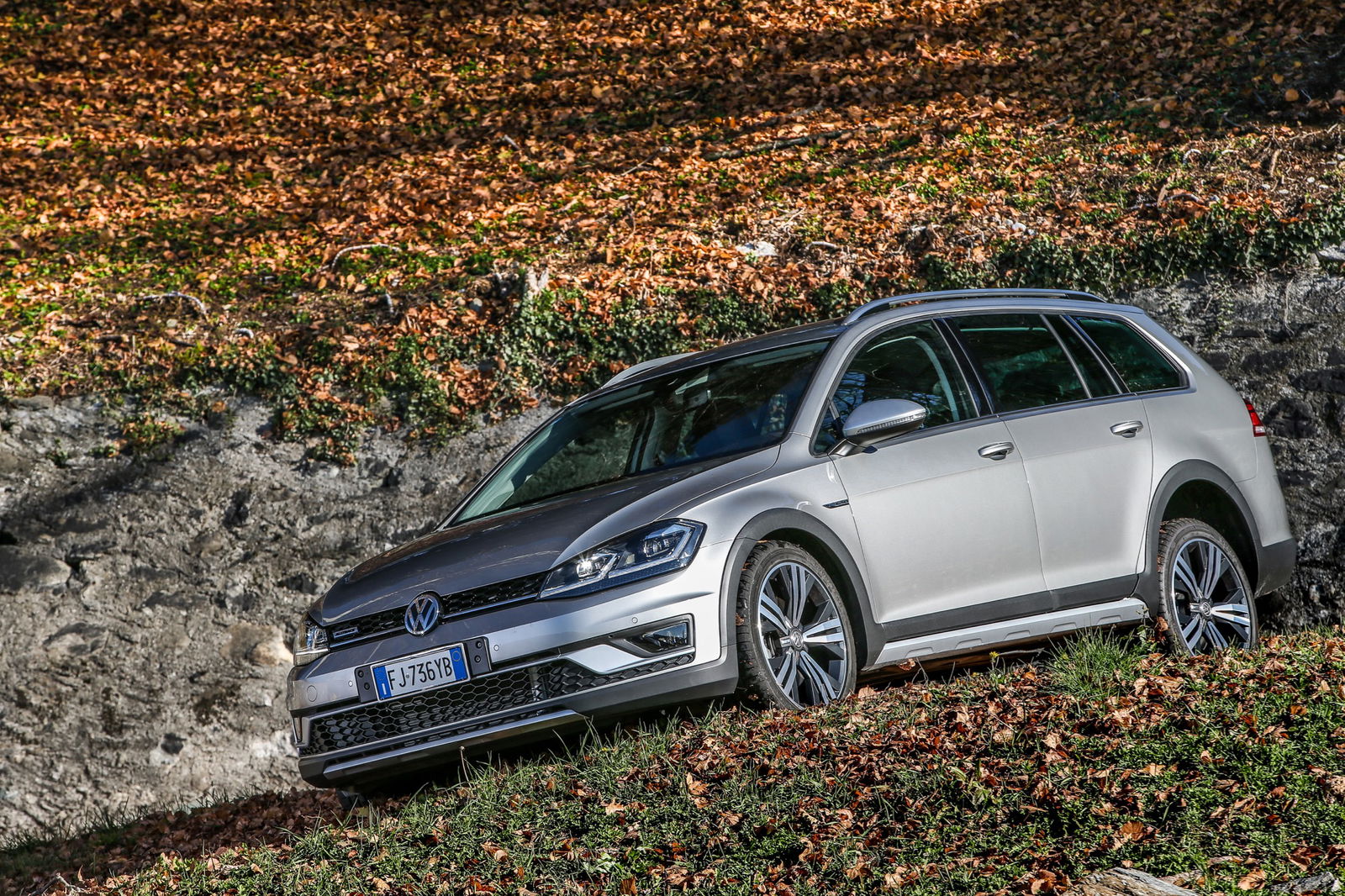 A poco più di un anno dal primo contatto con la Volkswagen Golf Variant Alltrack, l’occasione di guidarla di nuovo coglie il mercato auto italiano in una fase in cui i SUV continuano a guadagnare terreno. In generale continua a crescere la fascia di clienti che cerca modelli meno tradizionali, che per funzionalità, design o entrambi gli aspetti si differenzino dalle abituali categorie. Le station wagon con potenzialità offroad possono approfittare di questo nuovo approccio all’acquisto, grazie innanzitutto alla loro estrema versatilità. Il Gruppo VW ha numerosi modelli in gamma, ad esempio l’Audi A4 allroad quattro, esempio di interpretazione di successo in questa specifica categoria. La Golf Variant Alltrack punta agli stessi obiettivi, con la sobrietà – forse addirittura eccessiva – a cui ci ha abituato. Ogni dettaglio, infatti, è studiato per essere allo stesso tempo utile e sobrio, solido e misurato, funzionale e senza fronzoli. Volkswagen in tutto e per tutto. In questo caso, però, il modello di partenza, ossia la Variant, è valorizzata dall’innesto del pacchetto Alltrack, composto da dettagli come le finiture color argento per gli specchi retrovisori esterni e gli elementi decorativi tipo la fascia in zona frontale, e soprattutto le fasce protettive laterali e posteriori, i cerchi Valley da 17″ con pneumatici 205/55.