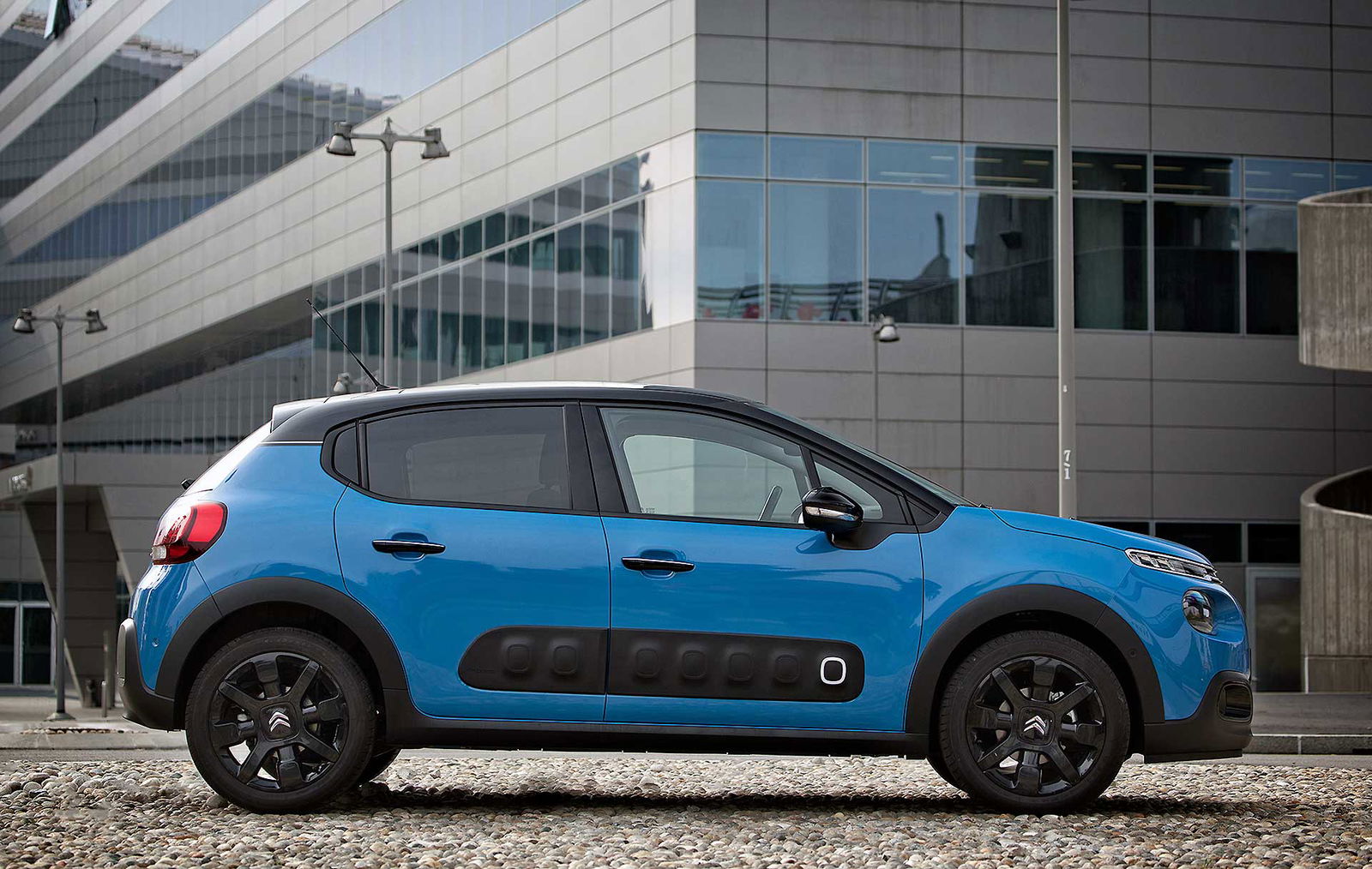 Il fatto che l’azienda abbia visto giusto con la nuova Citroën C3 appare chiaro guardandosi attorno. La piccola del Double Chevron piace, si vede in giro. I numeri lo confermano: nel mese di ottobre 2017 sono state 4.426 le nuove C3 immatricolate, quasi il doppio dell’anno precedente. Una ricetta, quella del “Be Different”, che sta dando i suoi frutti e di cui la C3 è un chiaro esempio. Rivista, anzi rifatta, rinvigorita dalla nuova generazione, la C3 è da sempre uno dei punti di forza della gamma Citroën. Lo è anche oggi, che ha cambiato faccia e si pone sul mercato in un modo che potremmo definire sicuramente “allegro”. Questa volta l’abbinamento di colori sulla C3 che arriva in redazione è blu-nero con interni grigi.LOOK GIOVANETra i numerosi restyling delle vetture del Gruppo PSA, la Citroën C3 è di sicuro quella che più di tutti ha cambiato “mood”. L’idea di Citroën di tornare alle origini – le auto di André Citroën sono sempre state originalissime e all’avanguardia – e differenziare i propri modelli, iniziata con la C4 Cactus, si ritrova in questa nuova C3, caratterizzata dagli airbump laterali e dall’abitacolo arredato in modo molto originale.Il frontale è allineato al nuovo family feeling Citroën: alto, con i fari squadrati posti su due piani. Ma è l’interno che continua a piacermi. I richiami alla “spartana” (ma geniale) Cactus sono parecchi, con idee semplici e funzionali che piacciono anche agli ospiti che si approcciano per la prima volta alla compatta Citroën. L’abitabilità è molto buona, i sedili comodi. La C3 sembra sappia mettere di buon umore, grazie al mix ben riuscito di caratteristiche, semplicità e razionalità prima di tutto. La plancia vede dominare il il touch screen da 7 pollici; pochi i pulsanti, perché tutto si comanda dallo schermo anche se a volte è necessaria una manovra in più (i comandi del riscaldamento li avrei lasciati a parte).LA PIU’ COMODA
