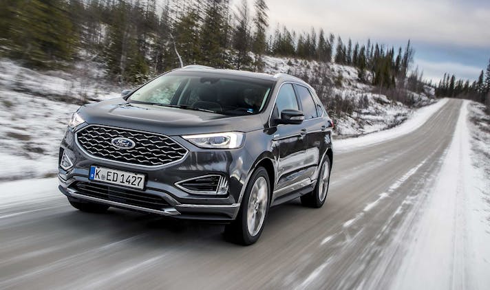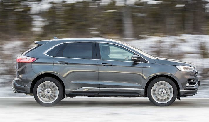 La trazione integrale Intelligent Ford AWD fa tutto da sola leggendo la strada scollegando l’asse posteriore quando non necessario e trasmettendo la trazione alle ruote posteriori solo in caso di bisogno. Ne beneficiano i consumi che durante il nostro test si sono fermati (con la versione da 238 cv) a 7,6 l/100 km. Dato da prendere comunque con beneficio di inventario visto che in Svezia il ritmo di guida è realmente morigerato. Quindi niente complicazioni, multiassetti, mappature, e compagnia. Accendete con il tasto start e lasciate fare a lei; tutti gli ADAS si attivano rapidamente dal volante, anche se al momento ad ognuno è dedicato ancora un tasto specifico, mentre le ultimissime tendenze vogliono “centralizzata” l’accensione di Cruise Control e Lane Assist. Il lavoro svolto sugli interni è interessante, scompare la leva selettrice del cambio automatico, rimpiazzata da un selettore circolare come vogliono le ultime tendenze, soluzione che ha liberato spazio nel tunnel centrale così che ora è possibile ricaricare wireless i cellulari predisposti.SILENZIO, SI VIAGGIAPercepisco una migliore cura generale nell’assemblaggio degli interni e mi godo il viaggio coccolato da un abitacolo spazioso, luminosissimo e realmente silenzioso, al punto da smorzare anche il rumore di rotolamento delle gomme chiodate. Concreta, ma efficace. La Edge non tradisce le attese quanto a comfort, che è davvero di ottimo livello. Il relax di guida regna su tutto, anche quando si sta viaggiando in condizioni limite come quelle incontrate nel test svedese.PRESTAZIONI MORBIDE