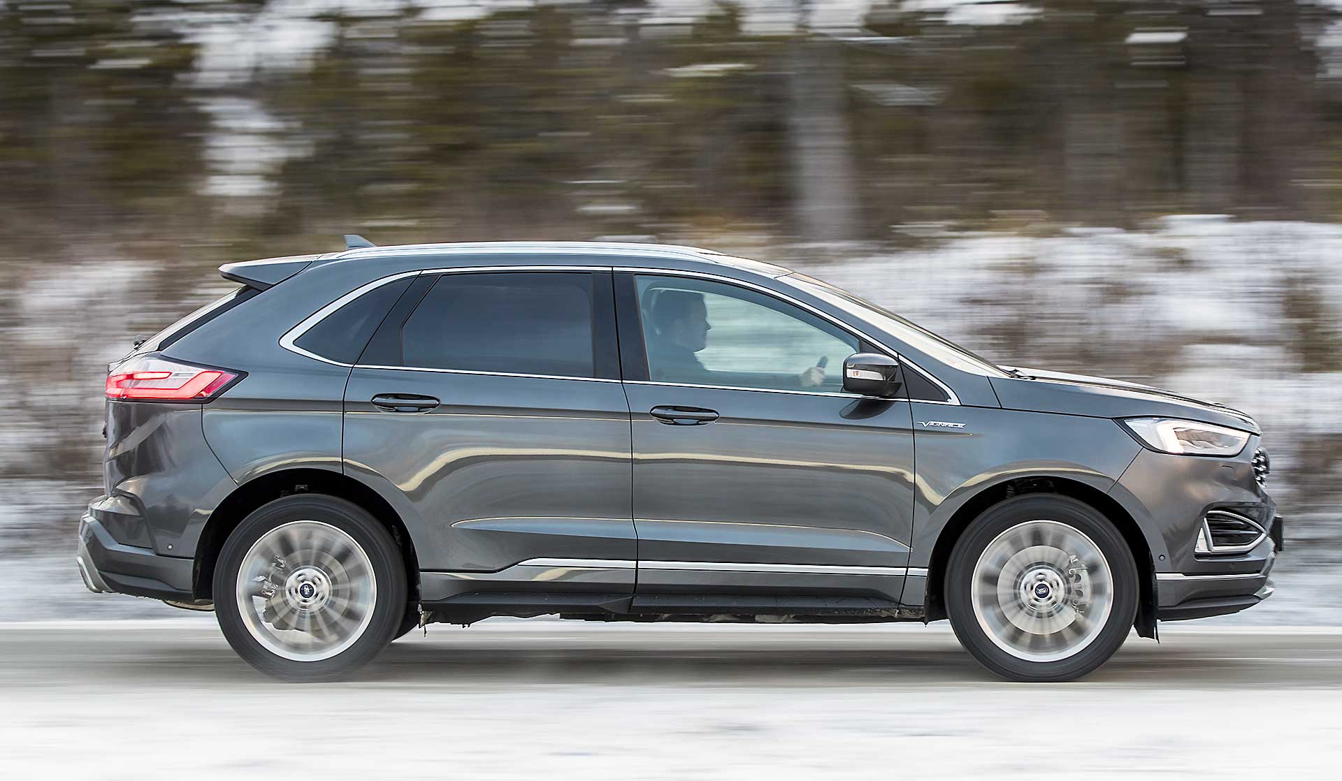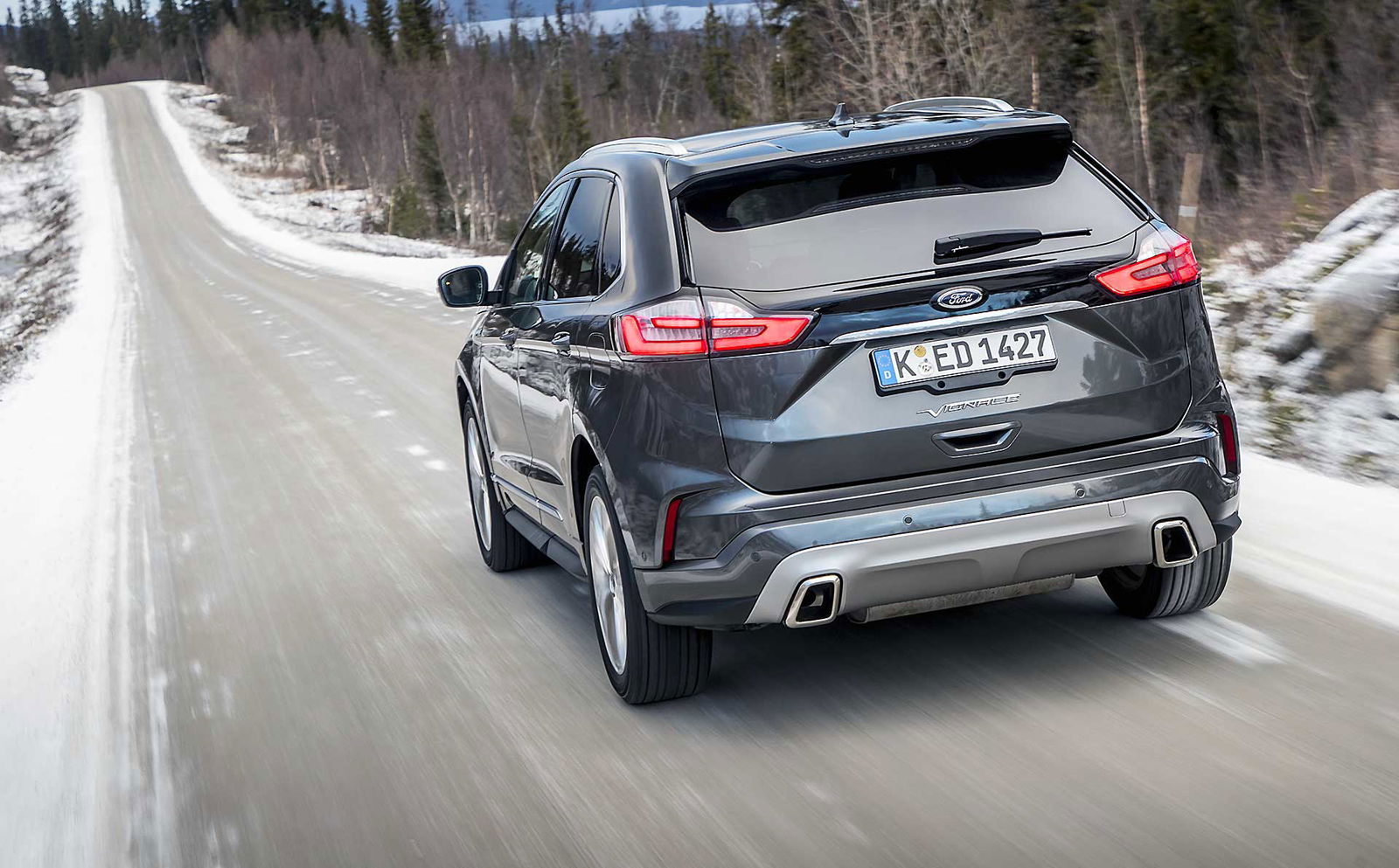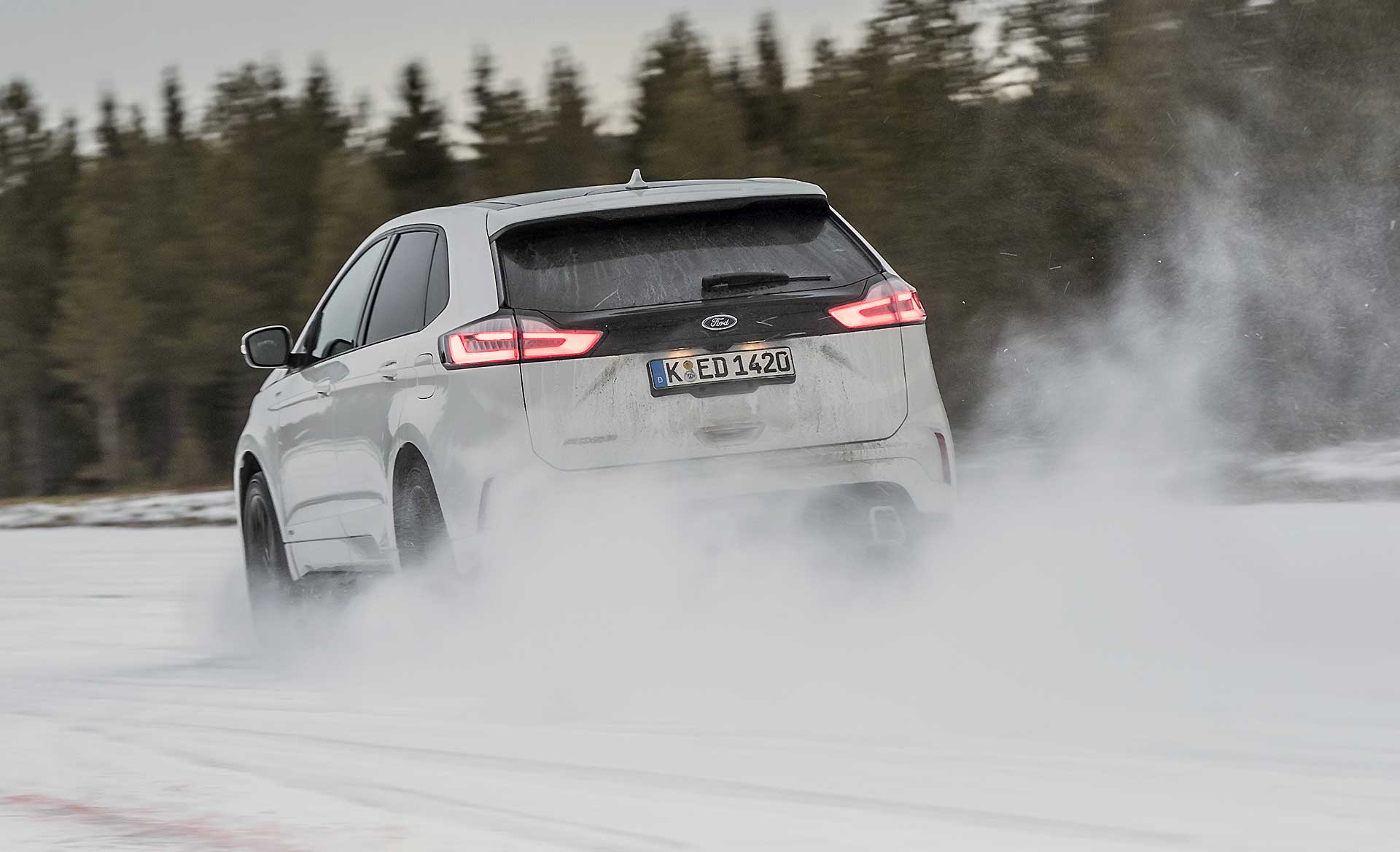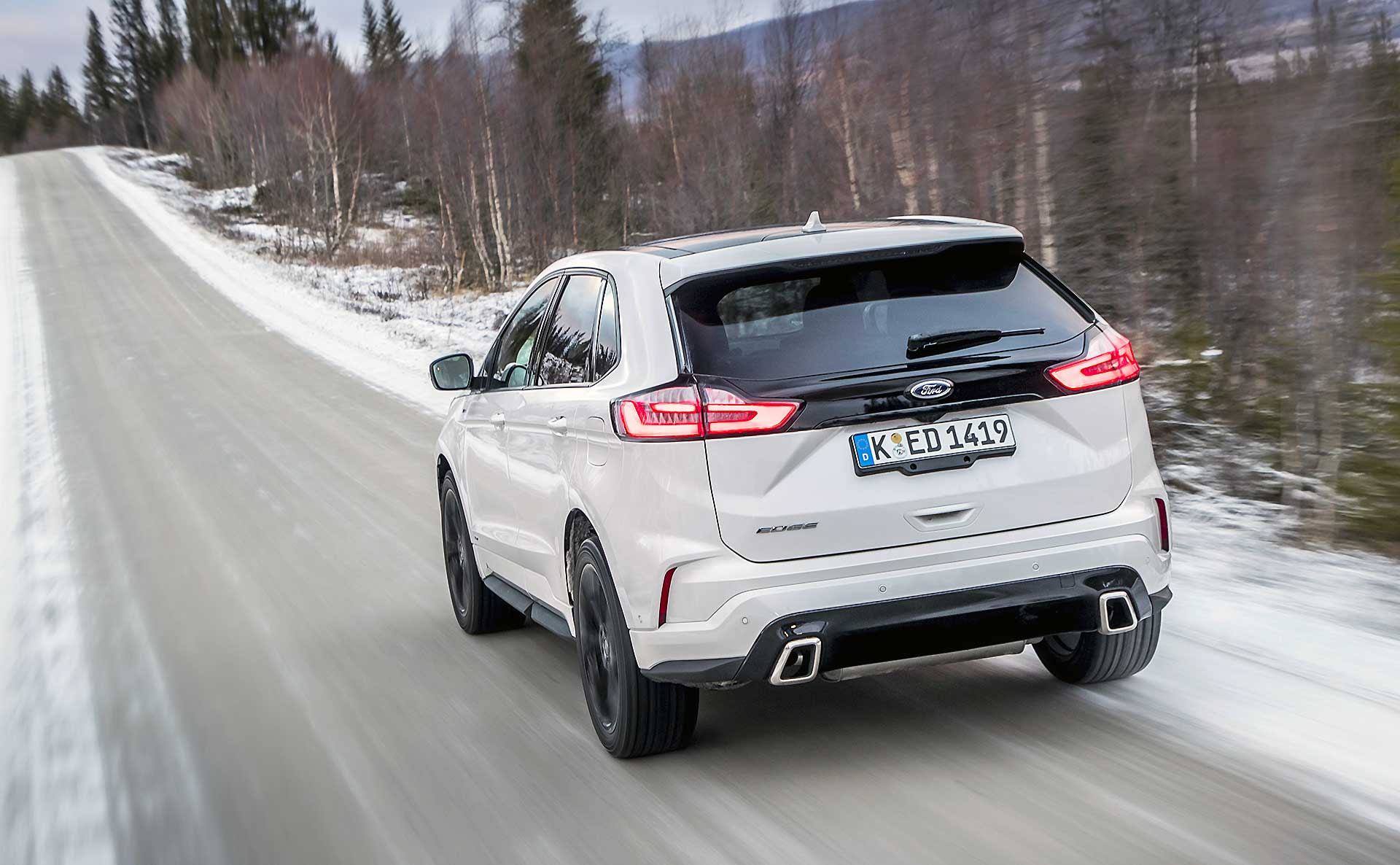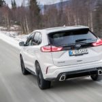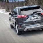La trazione integrale Intelligent Ford AWD fa tutto da sola leggendo la strada scollegando l’asse posteriore quando non necessario e trasmettendo la trazione alle ruote posteriori solo in caso di bisogno. Ne beneficiano i consumi che durante il nostro test si sono fermati (con la versione da 238 cv) a 7,6 l/100 km. Dato da prendere comunque con beneficio di inventario visto che in Svezia il ritmo di guida è realmente morigerato. Quindi niente complicazioni, multiassetti, mappature, e compagnia. Accendete con il tasto start e lasciate fare a lei; tutti gli ADAS si attivano rapidamente dal volante, anche se al momento ad ognuno è dedicato ancora un tasto specifico, mentre le ultimissime tendenze vogliono “centralizzata” l’accensione di Cruise Control e Lane Assist. Il lavoro svolto sugli interni è interessante, scompare la leva selettrice del cambio automatico, rimpiazzata da un selettore circolare come vogliono le ultime tendenze, soluzione che ha liberato spazio nel tunnel centrale così che ora è possibile ricaricare wireless i cellulari predisposti.SILENZIO, SI VIAGGIAPercepisco una migliore cura generale nell’assemblaggio degli interni e mi godo il viaggio coccolato da un abitacolo spazioso, luminosissimo e realmente silenzioso, al punto da smorzare anche il rumore di rotolamento delle gomme chiodate. Concreta, ma efficace. La Edge non tradisce le attese quanto a comfort, che è davvero di ottimo livello. Il relax di guida regna su tutto, anche quando si sta viaggiando in condizioni limite come quelle incontrate nel test svedese.PRESTAZIONI MORBIDE