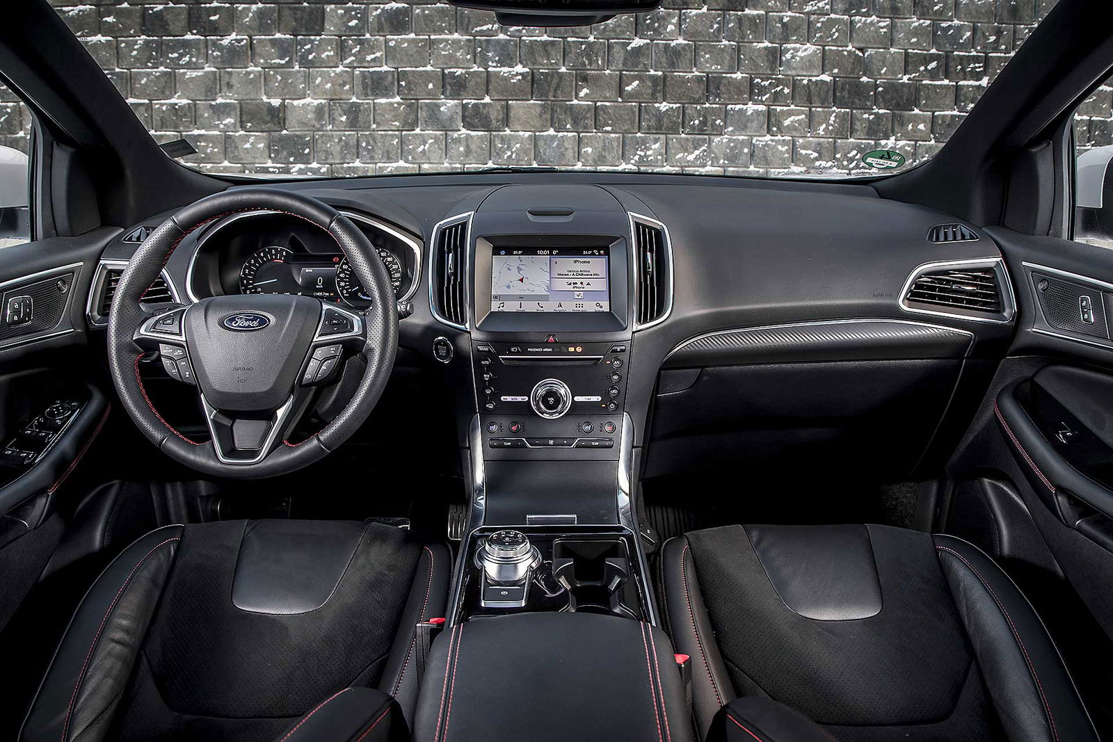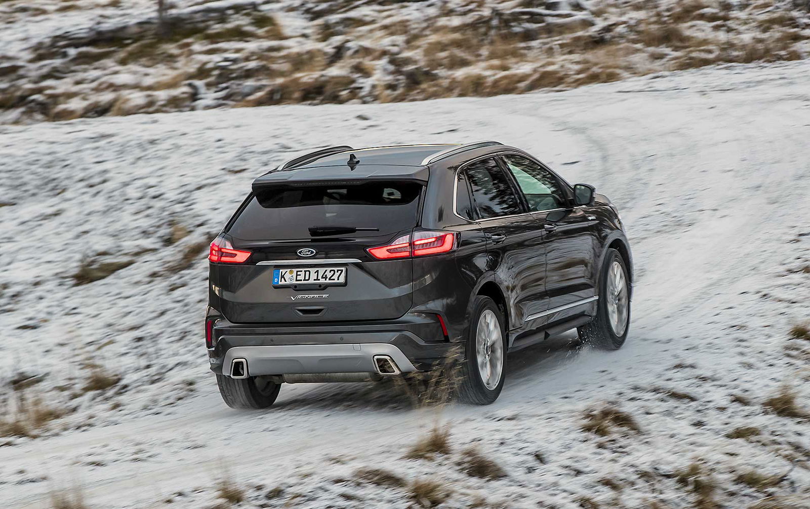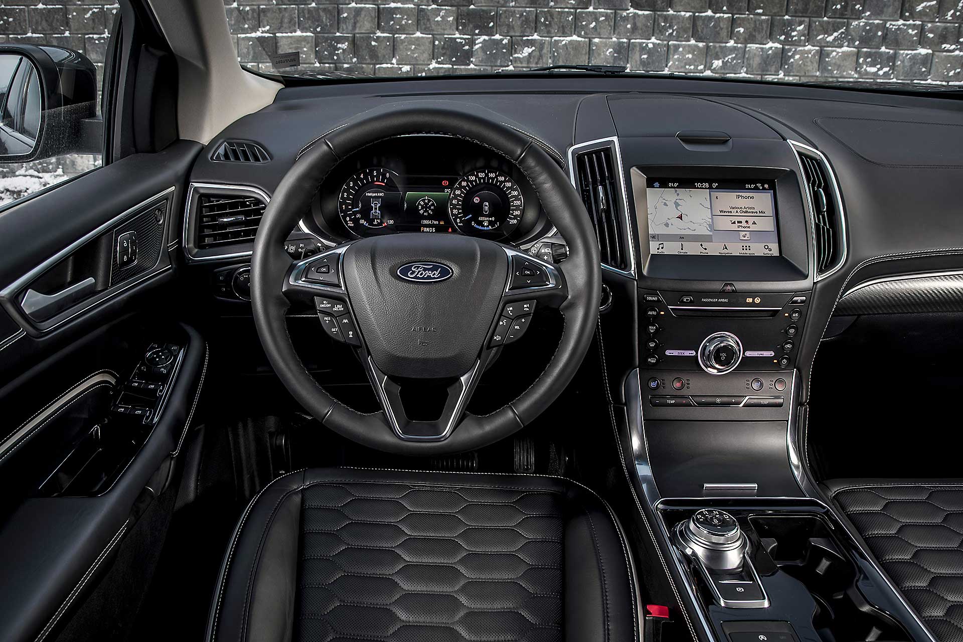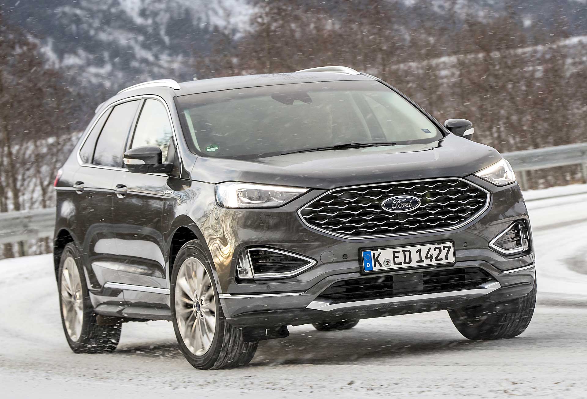 La trazione integrale Intelligent Ford AWD fa tutto da sola leggendo la strada scollegando l’asse posteriore quando non necessario e trasmettendo la trazione alle ruote posteriori solo in caso di bisogno. Ne beneficiano i consumi che durante il nostro test si sono fermati (con la versione da 238 cv) a 7,6 l/100 km. Dato da prendere comunque con beneficio di inventario visto che in Svezia il ritmo di guida è realmente morigerato. Quindi niente complicazioni, multiassetti, mappature, e compagnia. Accendete con il tasto start e lasciate fare a lei; tutti gli ADAS si attivano rapidamente dal volante, anche se al momento ad ognuno è dedicato ancora un tasto specifico, mentre le ultimissime tendenze vogliono “centralizzata” l’accensione di Cruise Control e Lane Assist. Il lavoro svolto sugli interni è interessante, scompare la leva selettrice del cambio automatico, rimpiazzata da un selettore circolare come vogliono le ultime tendenze, soluzione che ha liberato spazio nel tunnel centrale così che ora è possibile ricaricare wireless i cellulari predisposti.SILENZIO, SI VIAGGIAPercepisco una migliore cura generale nell’assemblaggio degli interni e mi godo il viaggio coccolato da un abitacolo spazioso, luminosissimo e realmente silenzioso, al punto da smorzare anche il rumore di rotolamento delle gomme chiodate. Concreta, ma efficace. La Edge non tradisce le attese quanto a comfort, che è davvero di ottimo livello. Il relax di guida regna su tutto, anche quando si sta viaggiando in condizioni limite come quelle incontrate nel test svedese.PRESTAZIONI MORBIDE