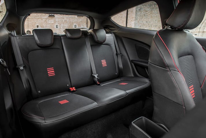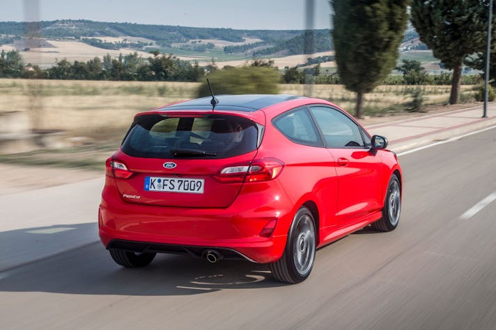 Il primo esemplare che provo è la Fiesta ST-Line con il motore EcoBoost da 140 cv, cambio a sei marce e cerchi da 17 pollici. L’allestimento ST-Line prevede di serie tanti dettagli sportivi e l’assetto ribassato di 10 mm e più rigido del 15%, tanto a livello di molle quanto di ammortizzatori. Le sospensioni privilegiano la tenuta di strada, come si verifica inserendo l’auto in curva senza riguardi. Nessuna sbavatura, una chiara idea di cosa succeda tra gomme e asfalto e ampio margine per le correzioni sono tre sensazioni che fanno la felicità degli amanti della guida, grazie anche allo sterzo ben calibrato. Quale sia il dazio da pagare si scopre sulle piccole sconnessioni in sequenza, che non sempre vengono filtrate bene, mentre rallentatori e avvallamenti vengono superati molto meglio. Nel complesso il comfort è comunque buono, anche perché il lavoro fatto dai tecnici ha ridotto vibrazioni e rumorosità. Quanto poi al motore, al di là dei dati tecnici che si possono consultare nella scheda allegata, si capisce in fretta come mai questo tre cilindri abbia avuto tanto successo al concorso Engine of the Year: è pastoso, fluido e spinge bene a qualsiasi regime. La coppia di 180 Nm è sui massimi da 1.500 a 5.000 giri, mentre la potenza massima si raggiunge a 6.000. Basterebbero questi dati per dare una chiara idea della situazione, ma su strada ci si stupisce davanti alla pulizia dell’erogazione, che permette di passare da 0 a 100 km/h in 9 secondi. Questo motore raccoglierà probabilmente pochi ordini ma è un vero gioiellino. A chi ha intenzione di comprare una Fiesta 1.1 suggerisco di valutare bene la 1.0 EcoBooost in versione da 100 cv: i 1.000 euro di differenza sono ben spesi. Ah, quasi scordavo: quest’ultimo motore è l’unico che si può avere anche con cambio automatico, con un sovrapprezzo di altri 1.300 euro.