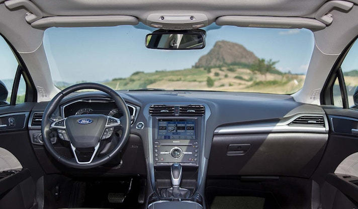 Lunga, bassa e scura, la Mondeo convince anche negli interni, solidi e pratici, anche se il design non è ricercato quanto la carrozzeria. Piace anche il grosso schermo centrale touch screen da 10,1” che può includere il navigatore e il sistema Sync 3 per i comandi vocali. Peccato non sia particolarmente luminoso, se paragonato con gli schermi di ultima generazione. La seduta è molto confortevole, per chi guida ma anche per chi siede a fianco o dietro grazie al notevole spazio a disposizione, sia in altezza sia in senso longitudinale. Il tunnel centrale, per il passeggero in mezzo, non rappresenta mai un grosso ostacolo.CHI VA PIANO… VA BENEIn movimento la Mondeo è piacevole da guidare, anzitutto per la posizione di guida. Bassa e ampiamente regolabile elettricamente, è impossibile non trovare la posizione corretta. Si va via lisci e senza particolari paturnie, anche se la Ford Mondeo Wagon 2.0 TDCi Powershift AWD ha taglie XL: 486 cm di lunghezza per 185 di larghezza, con un passo di 285 cm. Sono numeri importanti, che fanno immaginare tutto tranne un’auto facile da manovrare nello stretto. Ma non è così: il muso che si abbassa unito allo sterzo abbastanza demoltiplicato la rendono intuitiva e svelta, anche nella giungla della città. Merito pure del motore: dolce e molto progressivo, la turbina non lo affligge con un eccessivo turbo-lag.SILENZIO, SI VIAGGIA