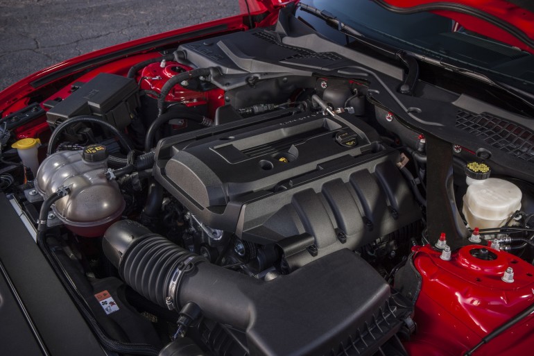 E il V8 5.0? Al cuor non si comanda: il sound meriterebbe il disco di platino, la percorrenza media di 7,4 km/l i sali per riprendersi dopo ogni sosta al distributore… Sebbene non reattivo ai bassi, anzi bassissimi regimi, quanto l’unità d’analogo frazionamento appannaggio di Chevrolet Camaro – ad onor del vero forte di una cubatura monstre di 6,2 litri –, dispensa coppia con la generosità di Robin Hood e consente, complice il launch control di serie, di scattare da 0 a 100 km/h in 4,8 secondi. Un tempo in grado di annichilire, almeno sulla carta, la citata Camaro, accreditata di un passaggio da 0 a 100 km/h in 5,2 secondi a causa principalmente del peso nettamente superiore (1.769 kg anziché 1.645).