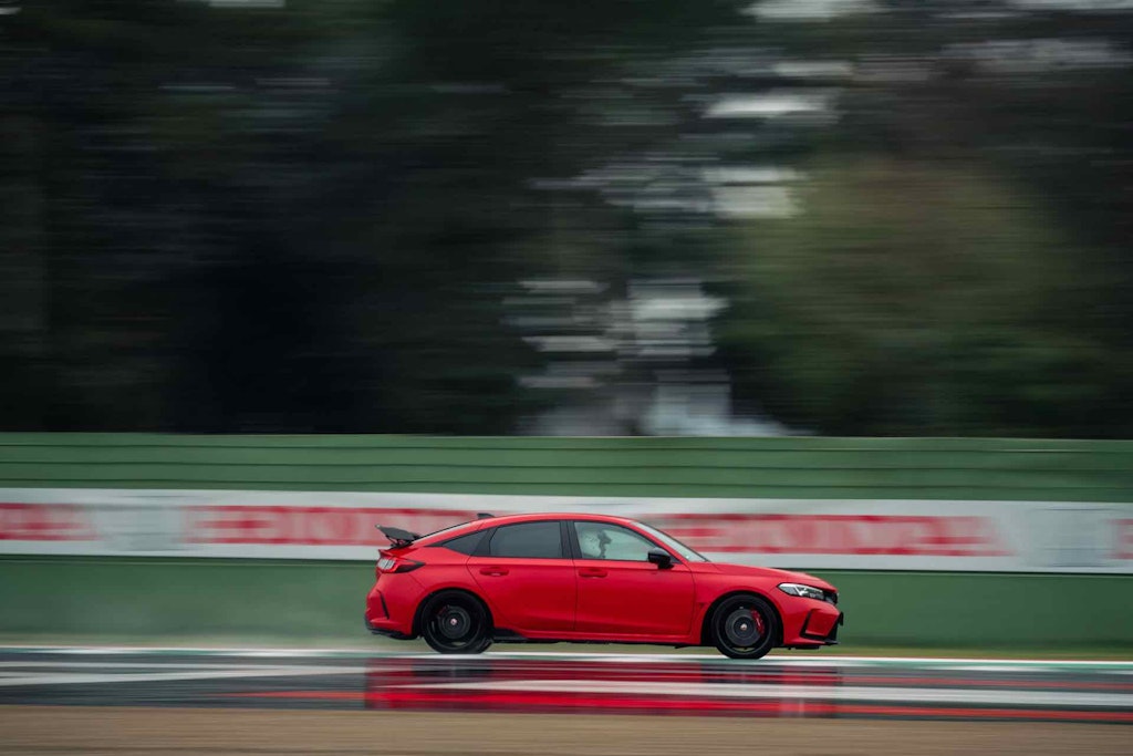 Inoltre, vanta una geometria perfezionata al millimetro per accogliere gli pneumatici Michelin Pilot Sport 4S 265/30R19 e la maggiore coppia del motore. Gli ammortizzatori adattivi sono gli stessi della generazione precedente ma presentano una logica di controllo rivista per il controllo del rollio e del beccheggio. Inoltre, in Honda hanno aumentato di 3,8 volte l’adesivo strutturale applicato in aree chiave del telaio come la paratia, l’apertura delle portiere e le torrette delle sospensioni. Risultato: la scocca è più rigida del 15% rispetto a quella della vecchia Civic. E adesso torniamo in pista.