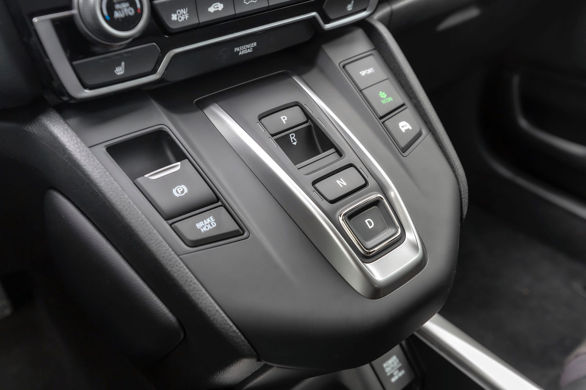 L’Honda CR-V è una world car ed essendo realizzata per essere venduta a tutte le latitudini ha un posto di guida incredibilmente accogliente, che si adatta facilmente alle stature e alle corporature più disparate. Non fa certo eccezione questa versione Hybrid, che ha come unica caratteristica distintiva il fatto di avere una pulsantiera al posto della classica leva del cambio. Per scegliere se muoversi in avanti in D, in retromarcia in R, selezionare la posizione folle N o quella di parcheggio P c’è infatti da scegliere tra una serie di tasti, facili da individuare e ben dimensionati.