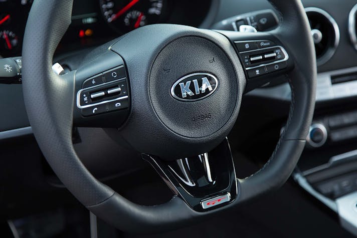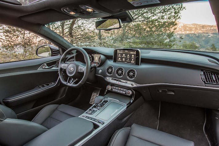 È una gran turismo e a dirlo sono prima di tutto i suoi numeri: la Kia Stinger è bassa (1.400 mm), lunga (4.830 mm) e larga (1.870 mm), con il muso allungato che si contrappone alla coda più compatta. C’è un bagagliaio abbastanza generoso, 406/1.114 litri, i fari a led e interni che Kia dichiara essere “d’ispirazione aeronautica”. Alcuni esempi sono rappresentati dalle bocchette tonde dell’impianto di ventilazione, i materiali utilizzati o la forma del cambio automatico, che ricorda la cloche di un aereo.DUE CUORI