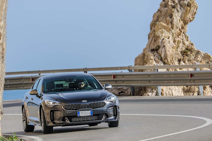 Guidata su un bel percorso misto, la Stinger GT offre un’esperienza di guida molto coinvolgente. Soprattutto in uscita di curva, dove si può sfruttare l’esuberanza del suo motore e l’ottima trazione, garantita dai controlli elettronici e dalla sua stabilità meccanica. Non è un riferimento nei cambi di direzione, com’era logico aspettarsi: l’agilità è penalizzata dalla sua imponente massa, che obbliga ad anticipare un poco l’impostazione della traiettoria.BRAVI BRAVI!Brava Kia: la Stinger è un prodotto ben riuscito. Le manca un pizzico di raffinatezza rispetto alle concorrenti più blasonate, per le quali però occorre impegnare il conto in banca in modo ben più massiccio. Oltretutto, nel prezzo d’acquisto della Stinger in linea con la filosofia Kia è incluso (quasi) tutto e anche di più: i 7 anni di garanzia, la Kasko e la manutenzione gratuita per 4 anni sono un jolly non da poco per chi guarda questo genere di auto.