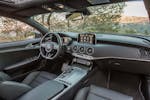 All’interno della Kia Stinger si è ben accolti. I sedili anteriori sono avvolgenti e offrono un sacco di regolazioni. Tutto l’abitacolo è orientato verso il pilota, che si trova al cospetto di una plancia solida e davvero ben realizzata. Solo alcune plastiche sono dure e poco rifinite, come il centro del volante o le tasche delle portiere, ma non ci si fa troppo caso. I pulsanti sono ben posizionati (anche se molto numerosi), la strumentazione è razionale, il tetto ben rivestito e lo schermo del navigatore luminoso. Un applauso all’head up display, che non infastidisce mai durante la guida e che rimane sempre ben leggibile. Dietro, lo spazio per le gambe dei passeggeri non è male (meglio in 4 che in 5, comunque…), ma la testa è un pelo sacrificata per via del tetto spiovente.FACILE, NO?