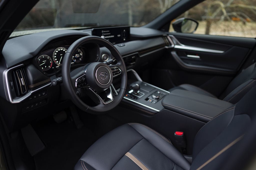 L’abitacolo della Mazda CX-60 2025 si conferma molto accogliente. La sensazione che si ha al posto di guida è di trovarsi comodi, in ambiente ampio e raffinato. Il mobiletto centrale è grande ma non provoca attacchi di claustrofobia e ha anche il pregio di mettere a disposizione alcuni comodi vani portaoggetti. Gli arredi paiono confezionati con cura e sugli allestimenti al top della gamma si possono trovare anche dettagli di pregio.
