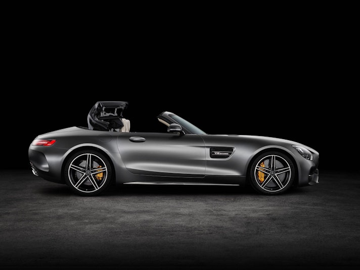 E’ passato mezzo secolo dalla nascita del marchio AMG e da allora sono cambiate molte cose. Nei primi tempi i due soci fondatori (Aufrecht e Melcher, la terza lettera della sigla è l’iniziale di Grossaspach, città di origine di Aufrecht) lavoravano tra le mura di un ex mulino. Oggi il marchio è entrato nell’orbita Mercedes e dallo stabilimento di Affalterbach esce una gamma in continua espansione e che oggi conta ben 56 proposte. La bandiera di AMG è oggi nelle mani della Mercedes-AMG GT, declinata con quattro livelli di potenza (476 , 522, 557 e 585 cv per le versioni base, S, C e R) e due carrozzerie, Coupé e Roadster. Proprio la Mercedes-AMG GT C Roadster è forse quella che meglio incarna lo spirito del marchio, una vera supercar fruibile nell’uso di ogni giorno, che fa sangue ma senza rinunciare a classe ed eleganza. Rispetto alla normale AMG GT, la C mostra gli artigli con un kit estetico specifico di cui fanno parte, tra le altre cose, i fascioni paraurti ridisegnati. La Mercedes-AMG GT C non si limita a fare più scena e offre agli amanti della guida chicche come il differenziale a slittamento limitato a controllo elettronico, il retrotreno sterzante e una taratura di base più rigida per le sospensioni adattive. Il prezzo della Mercedes-AMG GT C Roadster è di 173.800 euro, cifra che comprende anche gli abbaglianti automatici, la telecamera posteriore, i sensori di parcheggio, il navigatore e un telo coprivettura.