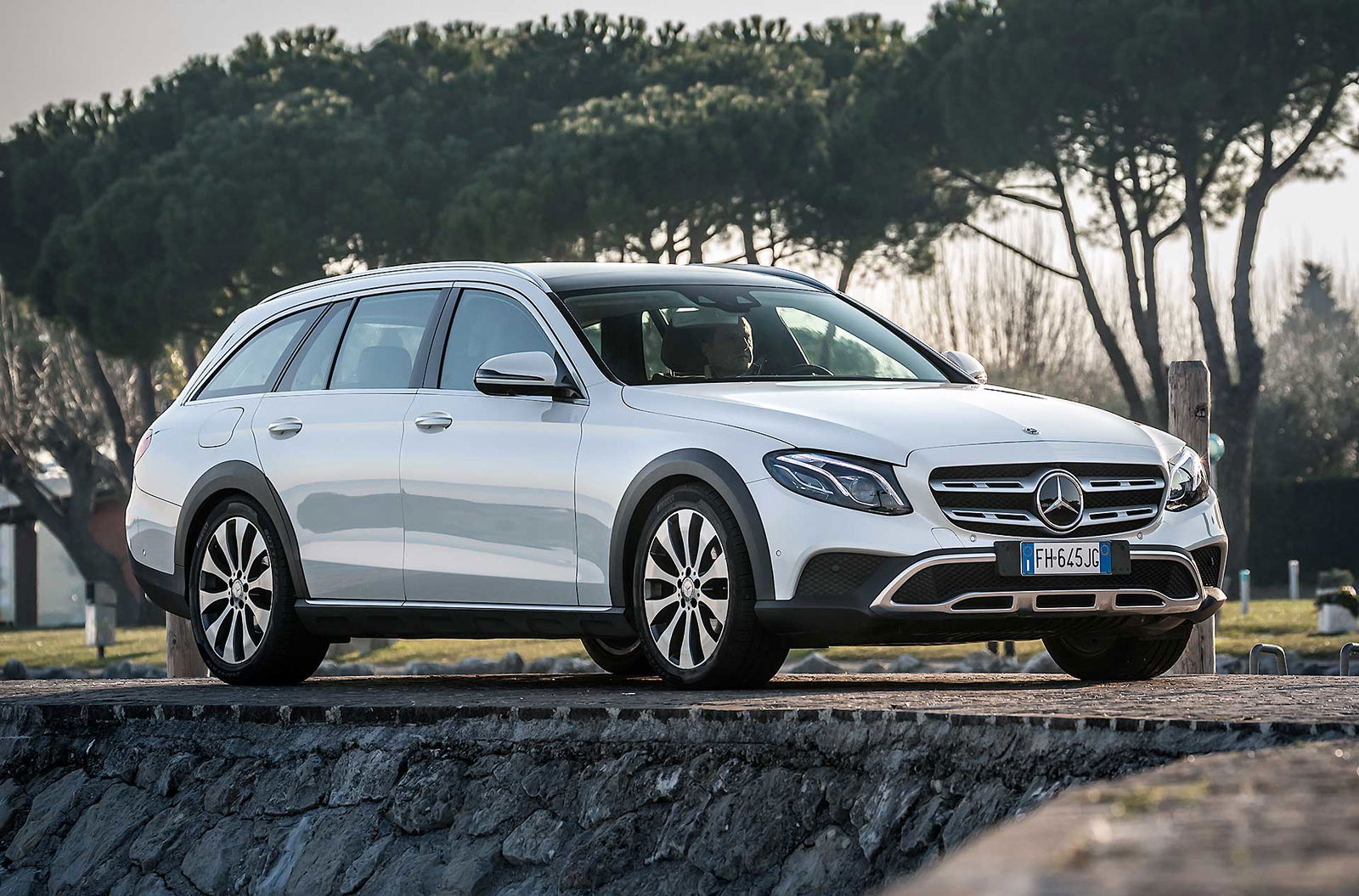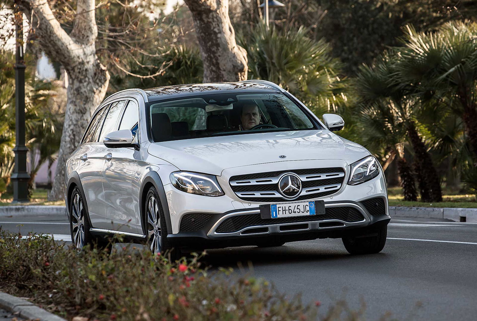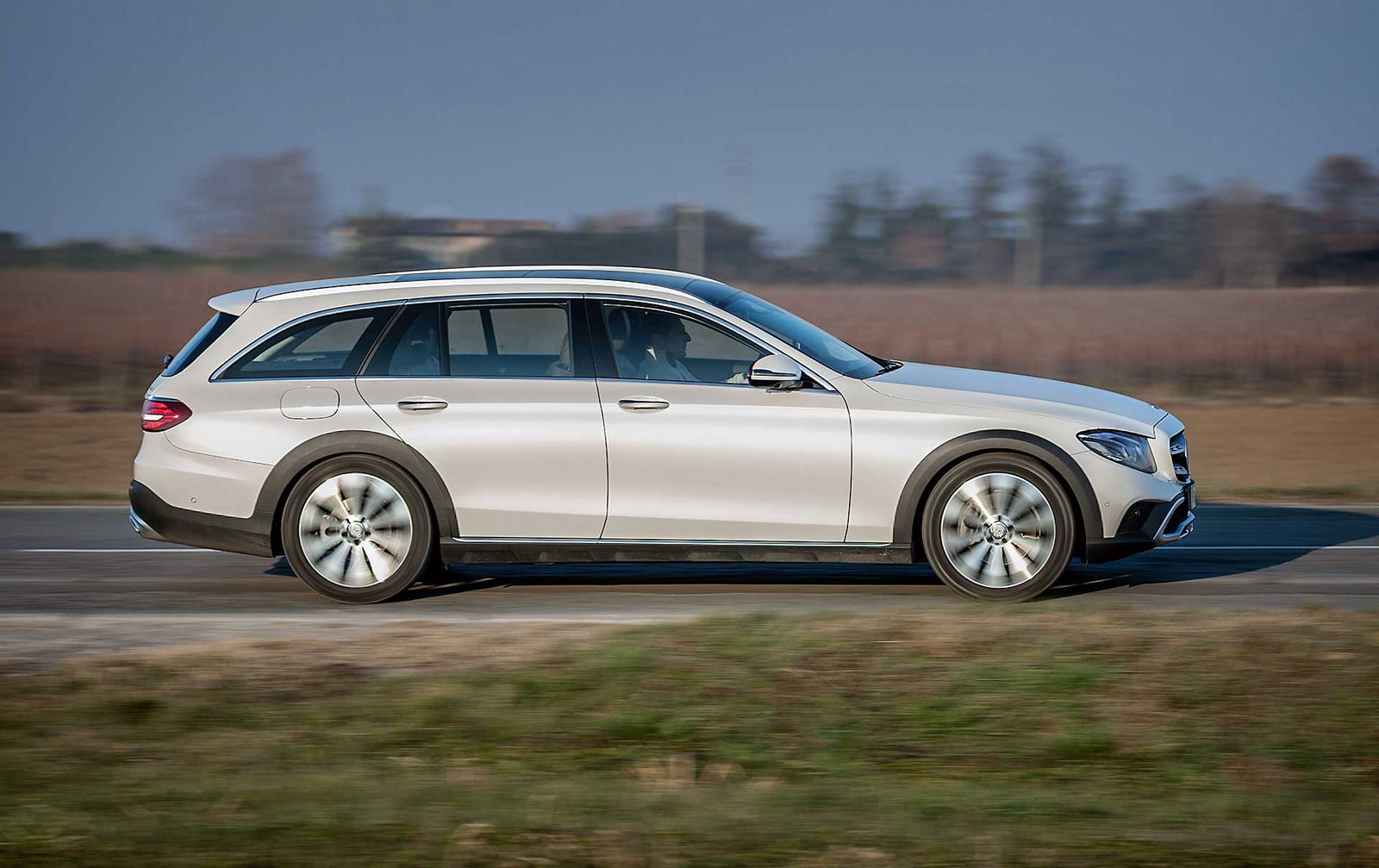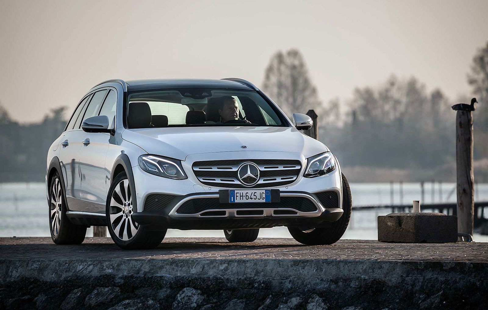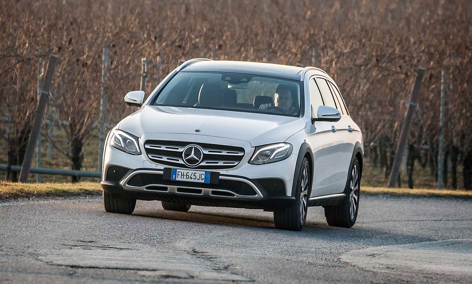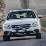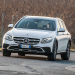 Look più “off” dicevamo. Infatti, come tutte le wagon di questa categoria anche La nuova Classe E station wagon All-Terrain ci tiene a sottolineare la sua indole più avventurosa con alcuni dettagli, come il bordo dei parafanghi protetto dalle ormai onnipresenti protezioni in plastica nera uniti senza soluzione di continuità alle minigonne nere sotto le fiancate. Anche la griglia anteriore è differente e sotto i paraurti compare una finitura plastica color alluminio che simula la slitta dei SUV.TANTO LUSSONon tragga in inganno l’aspetto esterno più “country” che Mercedes ha voluto dare alla All Terrain, all’interno lusso e tecnologia sono quelli ben noti a chi conosce la Classe E a partire dal maxischermo che comunica a driver (e pure al passeggero) tutte le informazioni necessarie e molto molto di più.UN SOLO MOTORE, MA VALIDOL’unico motore disponibile per ora è il 2.0 l a gasolio interamente realizzato in alluminio che ha debuttato proprio sulla classe E. Ha prestazioni decisamente interessanti: 194 cavalli, 400 Nm tra 1.600 e 2.800 giri che garantiscono di sbrigare la pratica 0-100km/h in 8 secondi, toccare i 232 km/h e dichiara consumi dichiarati da utilitaria. Dichiara e (quasi) mantiene, visto che se la promessa è di 5,2 litri/ 100 km, alla fine del nostro test abbiamo spuntato 5,6 un risultato assolutamente sorprendente. Il motore è abbinato al nuovo cambio automatico 9G-tronic e, ovviamente, alla trazione integrale 4MATIC che in condizioni normali di guida invia il 45 percento della coppia all’anteriore e il 55 percento alle ruote posteriori.DRIVESe dovessimo stilare una classifica del comfort, la Mercedes Classe E 220 CDI All Tearrain si piazzerebbe sicuramente ai vertici, sicuramente è al top della categoria.Ci salgo subito dopo aver guidato la cugina “alla lontana” E220 Coupé. Pensare che queste due auto abbiano in comune il pianale e molte parti meccaniche fa un po’ strano perché la E 220 CDI station wagon è di tutt’altra pasta, soprattutto in questa configurazione “rialzata”, capace di inserirsi di prepotenza nel segmento delle migliori SW All Terrain e di dare molto fastidio ai mostri sacri di questo segmento.PNEUMATICHE MON AMOUR