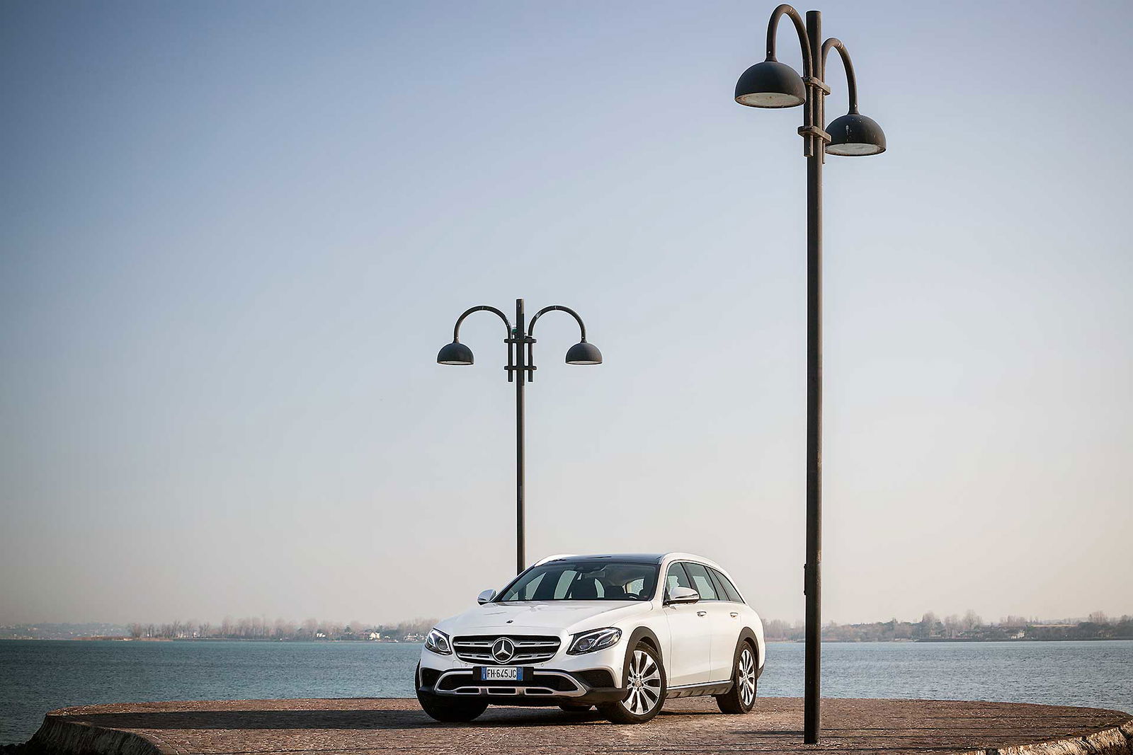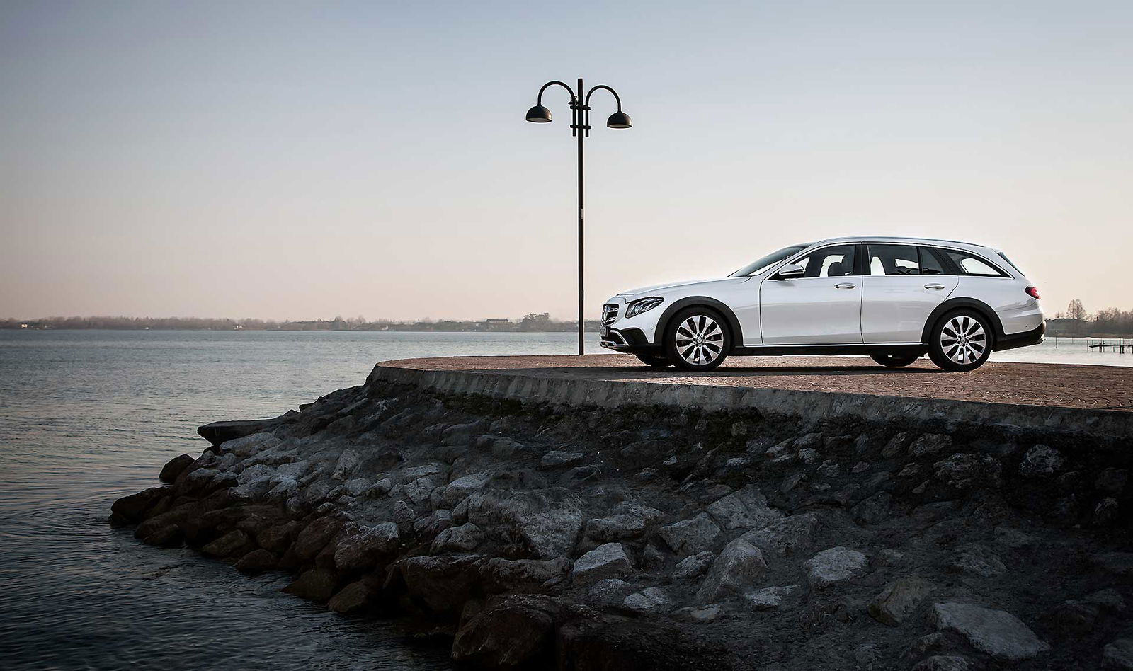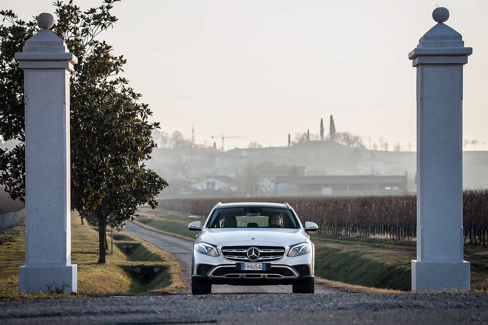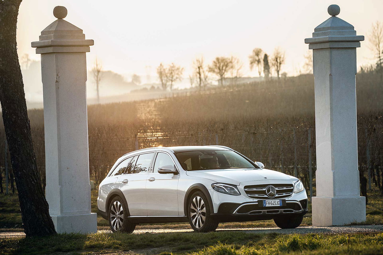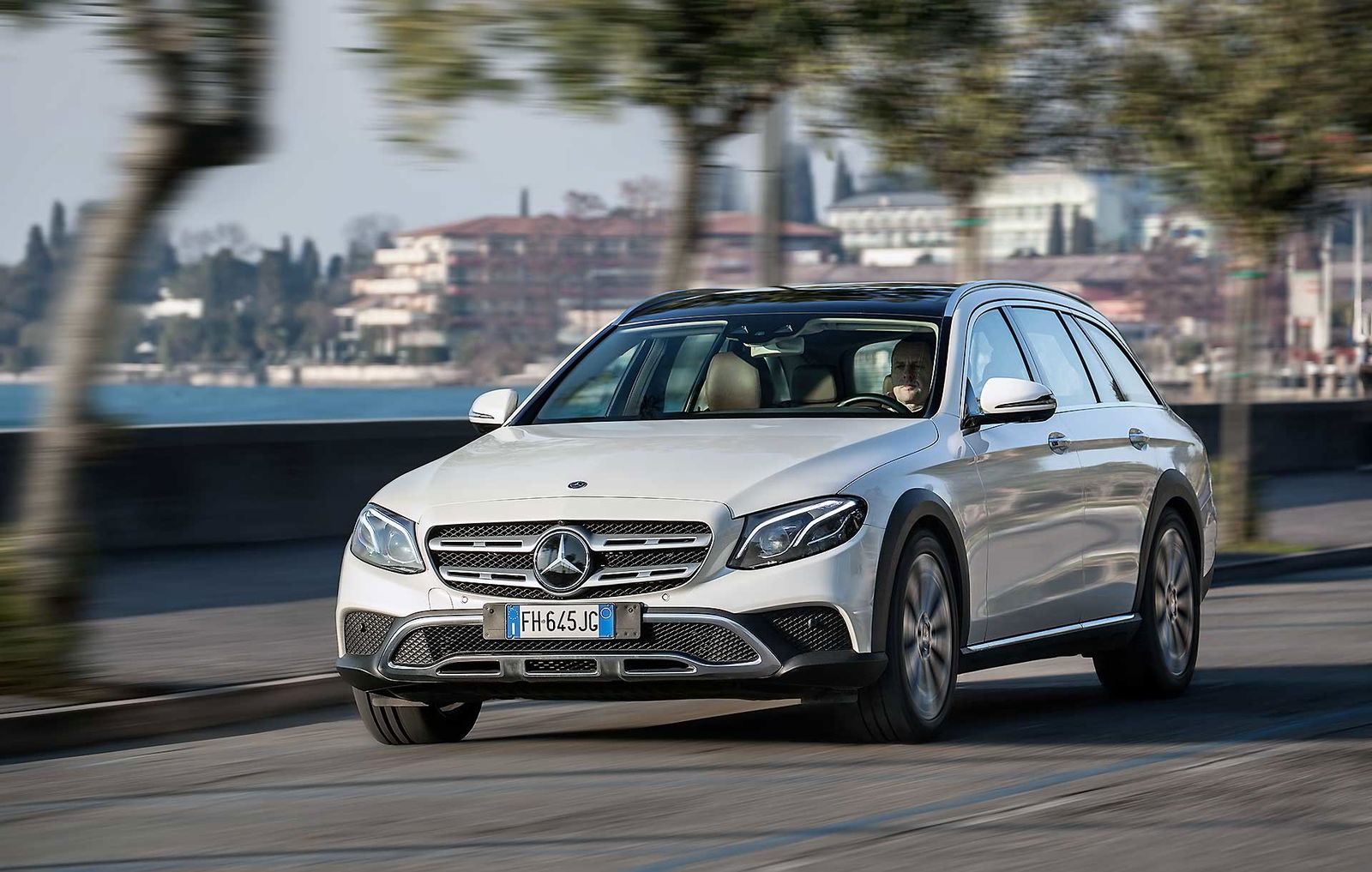 Look più “off” dicevamo. Infatti, come tutte le wagon di questa categoria anche La nuova Classe E station wagon All-Terrain ci tiene a sottolineare la sua indole più avventurosa con alcuni dettagli, come il bordo dei parafanghi protetto dalle ormai onnipresenti protezioni in plastica nera uniti senza soluzione di continuità alle minigonne nere sotto le fiancate. Anche la griglia anteriore è differente e sotto i paraurti compare una finitura plastica color alluminio che simula la slitta dei SUV.TANTO LUSSONon tragga in inganno l’aspetto esterno più “country” che Mercedes ha voluto dare alla All Terrain, all’interno lusso e tecnologia sono quelli ben noti a chi conosce la Classe E a partire dal maxischermo che comunica a driver (e pure al passeggero) tutte le informazioni necessarie e molto molto di più.UN SOLO MOTORE, MA VALIDOL’unico motore disponibile per ora è il 2.0 l a gasolio interamente realizzato in alluminio che ha debuttato proprio sulla classe E. Ha prestazioni decisamente interessanti: 194 cavalli, 400 Nm tra 1.600 e 2.800 giri che garantiscono di sbrigare la pratica 0-100km/h in 8 secondi, toccare i 232 km/h e dichiara consumi dichiarati da utilitaria. Dichiara e (quasi) mantiene, visto che se la promessa è di 5,2 litri/ 100 km, alla fine del nostro test abbiamo spuntato 5,6 un risultato assolutamente sorprendente. Il motore è abbinato al nuovo cambio automatico 9G-tronic e, ovviamente, alla trazione integrale 4MATIC che in condizioni normali di guida invia il 45 percento della coppia all’anteriore e il 55 percento alle ruote posteriori.DRIVESe dovessimo stilare una classifica del comfort, la Mercedes Classe E 220 CDI All Tearrain si piazzerebbe sicuramente ai vertici, sicuramente è al top della categoria.Ci salgo subito dopo aver guidato la cugina “alla lontana” E220 Coupé. Pensare che queste due auto abbiano in comune il pianale e molte parti meccaniche fa un po’ strano perché la E 220 CDI station wagon è di tutt’altra pasta, soprattutto in questa configurazione “rialzata”, capace di inserirsi di prepotenza nel segmento delle migliori SW All Terrain e di dare molto fastidio ai mostri sacri di questo segmento.PNEUMATICHE MON AMOUR