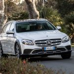 Nasce da una costola della Classe E Wagon e si propone di fare il “lavoro sporco”, ovvero affrontare anche percorsi che con la Wagon “normale” non vi sarebbe mai venuto in mente di affrontare. Sicuramente un vezzo per la maggior parte di chi la sceglierà, magari conquistato dal suo look un po’ più off che sinceramente dona molto alla linea filante della wagon tedesca. 14 millimetri in più grazie ai cerchi da 19 pollici gommati con pneumatici a spalla più alta, 15 millimetri in più grazie a una differente taratura delle sospensioni pneumatiche “Air Body Control” montate di serie. In tutto la Mercedes Classe E All Terrain si rialza di quasi 3 centimetri. Ma come vedremo può salire ancora scegliendo la mappatura “Off Road”FACCIA DA FUORI (STRADA)