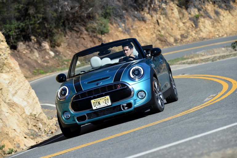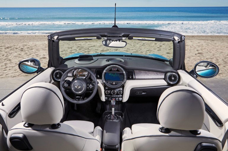 La multimedialità e gli interni ricalcano fedelmente quanto previsto da MINI tre porte, con alcune peculiarità quali la possibilità di avere la capote con il motivo Union Jack, accattivante esteticamente, e di beneficiare della modalità Cabrio del climatizzatore: sia optando per la configurazione tetto scorrevole sia guidando en plein air, l’influsso delle turbolenze viene compensato nella regolazione dell’intensità, della diffusione e della temperatura dei flussi d’aria generati dall’impianto automatico bizona. Una funzione pratica, capace di rafforzare il comfort della scoperta inglese al pari degli avvertimenti meteo connessi alle MINI Connected App: allertano il guidatore qualora lungo il tragitto sia prevista pioggia. Imperdibili!