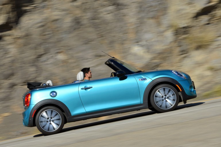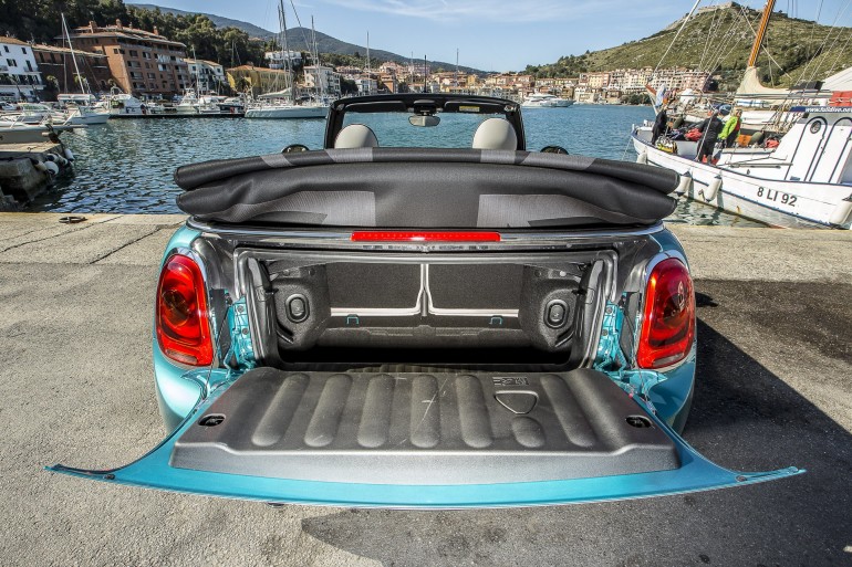30.100 euro per entrare in possesso della Cooper S “base” da 192 cv oggetto della nostra prova, mossa da un 2.0 turbo benzina da 192 cv. Un prezzo che sale a 33.400 euro optando per l’allestimento top di gamma Hype, pressoché un must dato che include il climatizzatore automatico bizona, la possibilità di selezionare diverse modalità di guida, gli interni in pelle e i cerchi in lega da 17 pollici, cui sommare i 1.950 euro del cambio automatico sportivo a 6 marce e i 250 euro del frangivento. Non volendo rinunciare alle sospensioni adattive (600 euro), una Cooper S “coi fiocchi” costa 36.200 euro. In assoluto non poco, anche considerando che la più potente Volkswagen Maggiolino Cabriolet – 2.0 turbo benzina da 220 cv – viene proposta a un prezzo solo lievemente superiore (36.650 euro); bisogna però considerare che, ad oggi, è difficile, quando non impossibile, trovare una cabriolet compatta altrettanto gratificante ed emozionante.LIVELa capote in tela c’è: il marchio distintivo di MINI Cabrio è salvo. Basata sulla versione coupé a tre porte, la cabriolet inglese ne condivide piattaforma e meccanica, così come le variazioni a livello di dimensioni e interasse. Rispetto al modello precedente aumentano la lunghezza di 98 millimetri e la larghezza di 44 mm, mentre il passo cresce di 28 mm e le carreggiate di 42 mm all’avantreno e 34 mm al retrotreno. Una testimonianza di come l’impronta a terra sia divenuta più generosa. Cambiamenti che hanno riflessi positivi anche sulla capacità del bagagliaio, aumentata del 25% e ora compresa tra 160 e 215 litri in funzione della posizione della capote. Quest’ultima rigorosamente in tela e a comando elettrico, in grado di aprirsi parzialmente (di 40 cm) o integralmente in 18 secondi e sino a una velocità di 30 km/h; agendo anche mediante il telecomando.