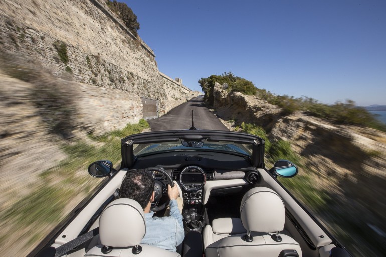 La precedente generazione, una volta esclusa l’elettronica, consentiva di “giocare” con il retrotreno in rilascio, provocando un lieve sovrasterzo che consentiva di rendere più rapida la successiva fase d’inserimento. La nuova MINI Cabrio è meno propensa ad assecondare questo stile, tanto che per scomporre la vettura sono necessarie manovre accentuate. Il model year 2016 della scoperta inglese predilige una guida meno irruenta, andando a sfruttare, piuttosto, il rigore direzionale sul veloce e la scarsa inclinazione al sottosterzo. La sensazione di sicurezza, del resto, è massima, complice lo sterzo “tattile” e comunicativo come in passato, oltre che meno sensibile alle giunzioni dell’asfalto. Ebbene sì: Cooper S può oggi essere guidata in totale relax.